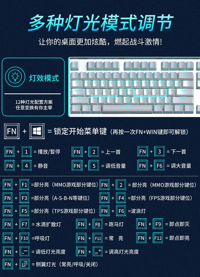 • 실버 화이트-아이스 블루 라이트 [측면 깃발, 전체 키 영향 없음]