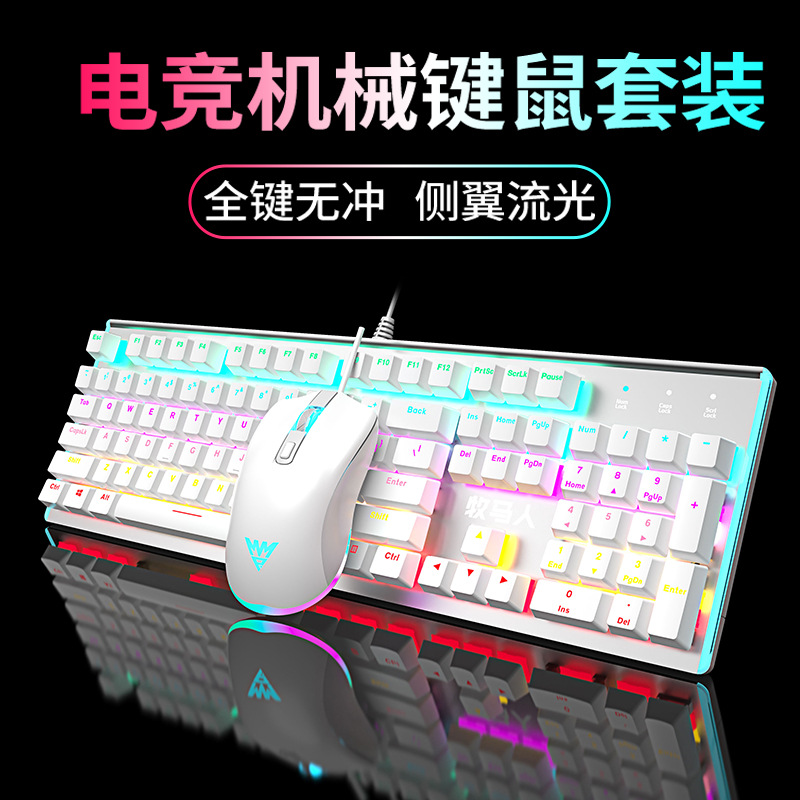 랭글러 키보드 K100 실제 기계식 키보드 및 마우스 유선 세트 전자 스포츠 게임 그린 샤프트 블랙 샤프트를위한 특수 주변 장치
