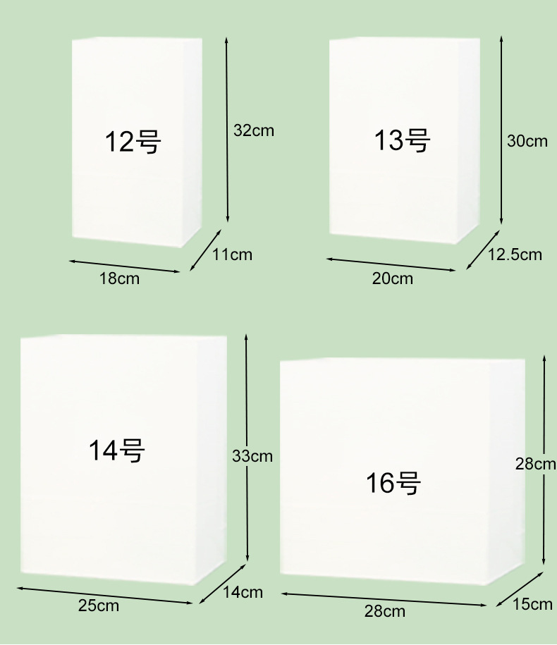 • 16 #: 너비 28 * 측면 15 높이 28cm;80g 흰색 소 가죽은 기름 증거가 아닙니다.