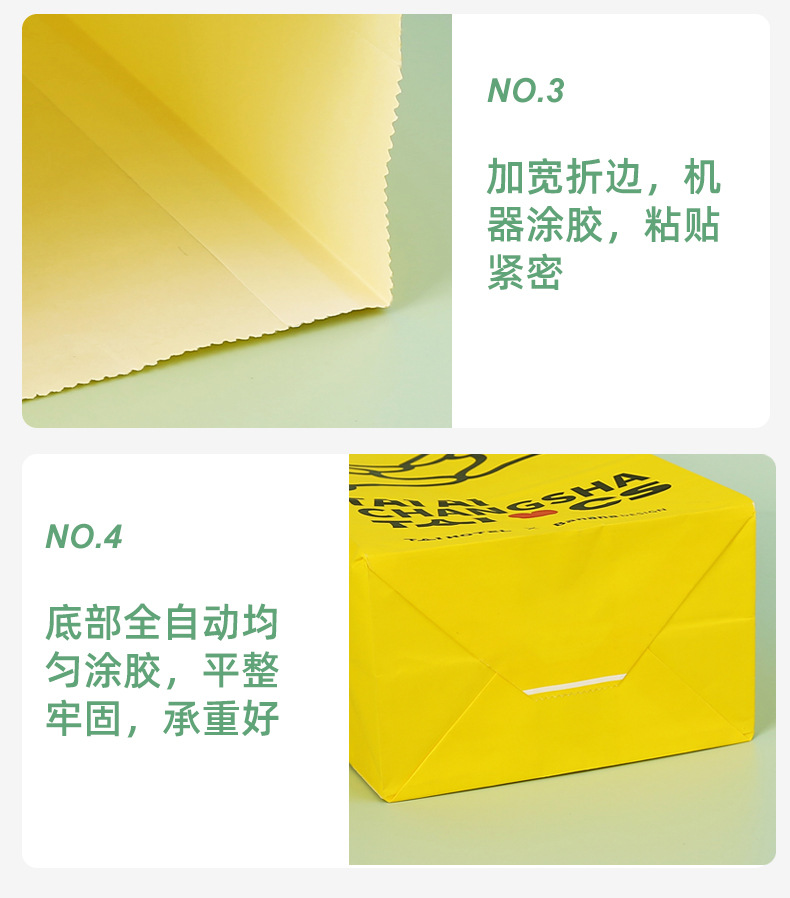 • 4 #: 너비 13 * 측면 8 높이 24cm;60g 노란색 소 가죽은 기름 증거가 아닙니다.