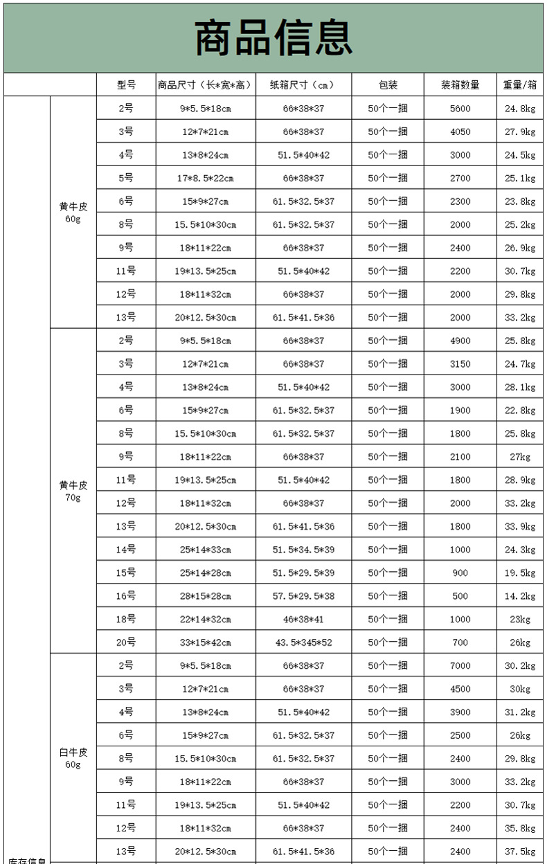 • 5 #: 너비 17 * 측면 8.5 높이 22cm;60g 노란색 소 가죽은 기름 증거가 아닙니다.
