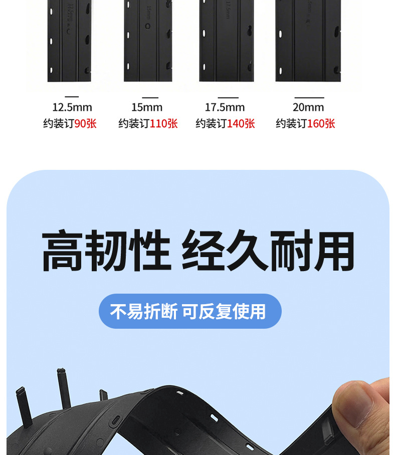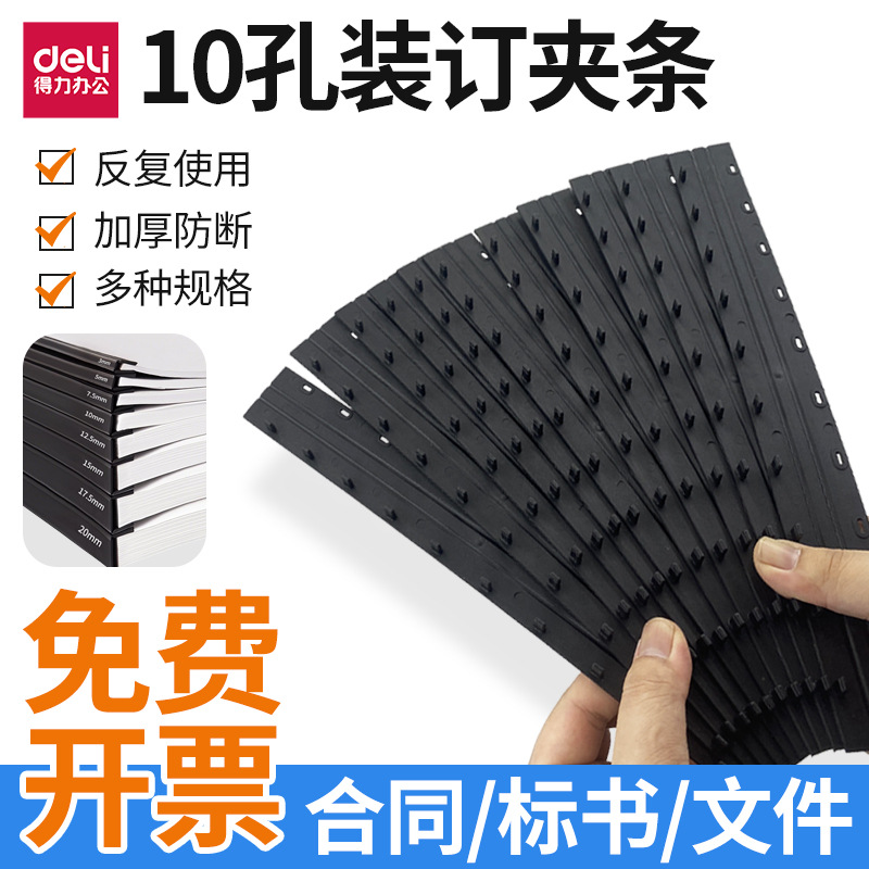 델리 10 홀 문서 바인딩 클립 a4 플라스틱 느슨한 잎 펀칭 카드 스트립 계약 문서 바인딩 클립 가장자리 스트립