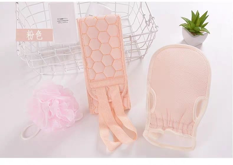 • 패션 3 종 세트 (백 스트립 + 목욕 타월 장갑 + 목욕 플라워)