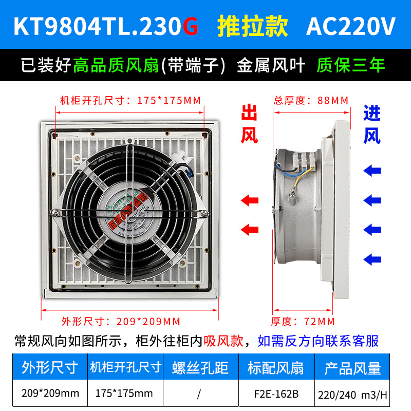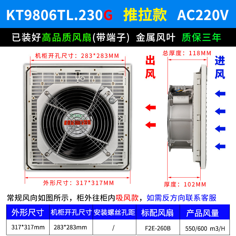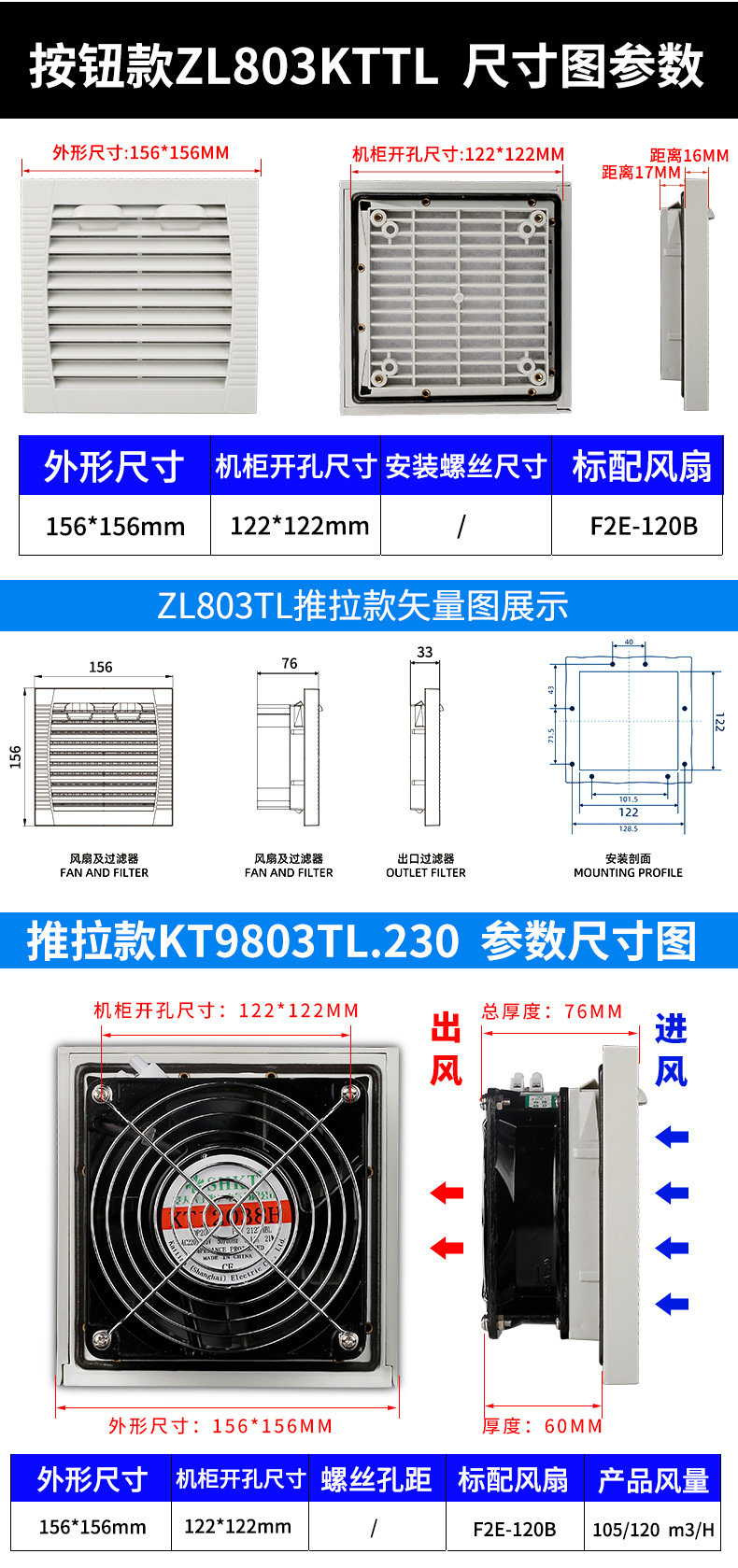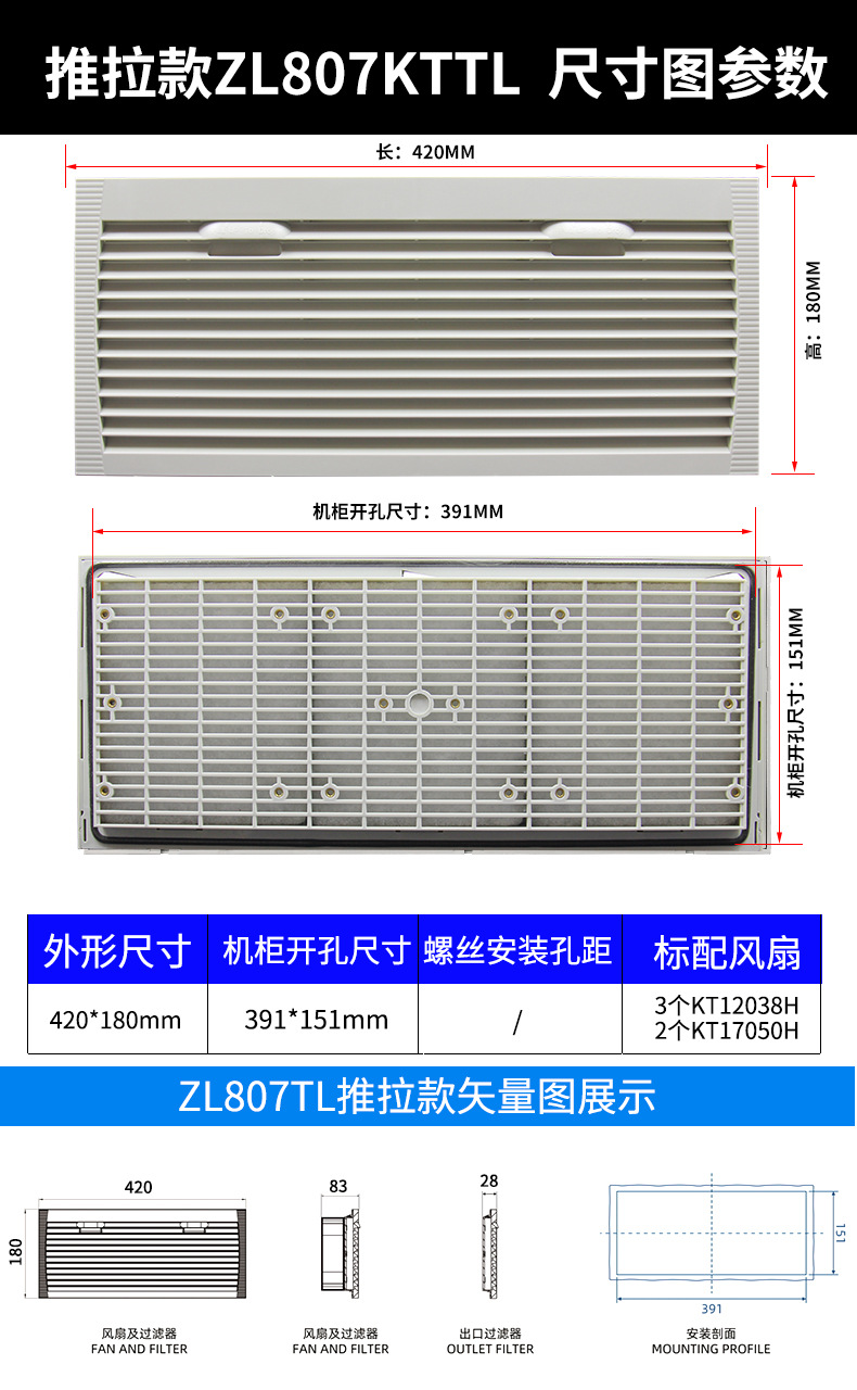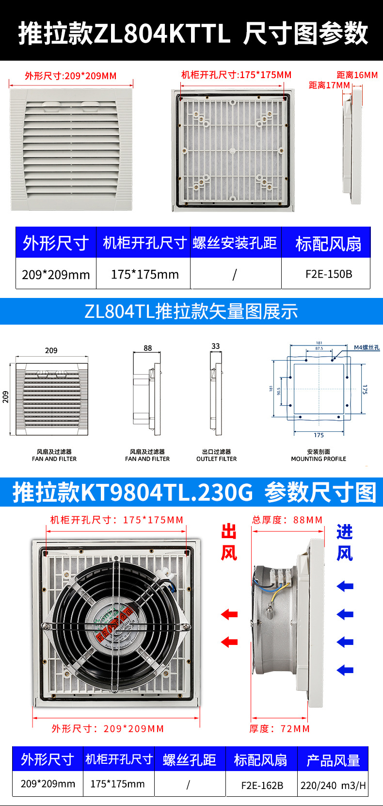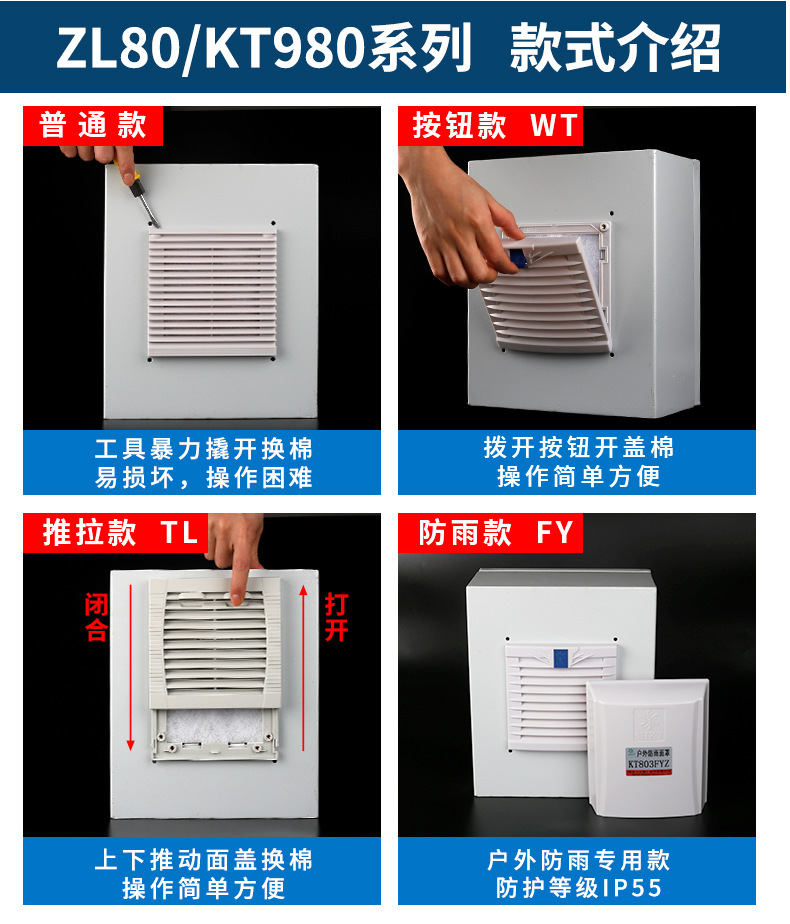Kaitian SHKT 푸시-풀 환기 필터 세트 캐비닛 냉각 팬 블라인드 ZL803KTTL