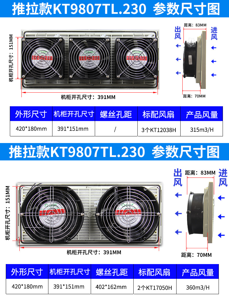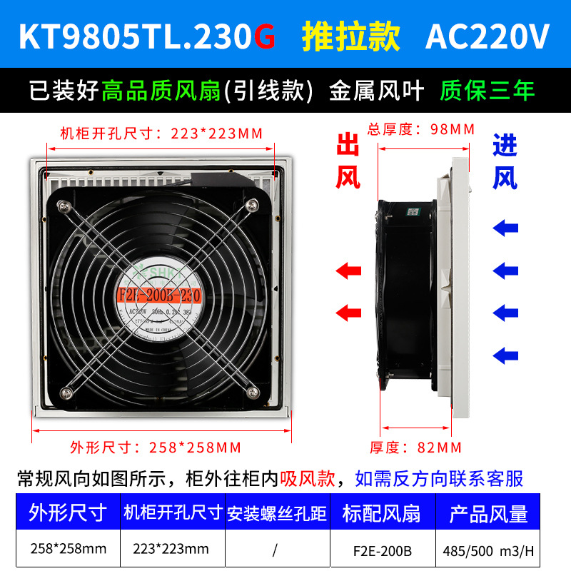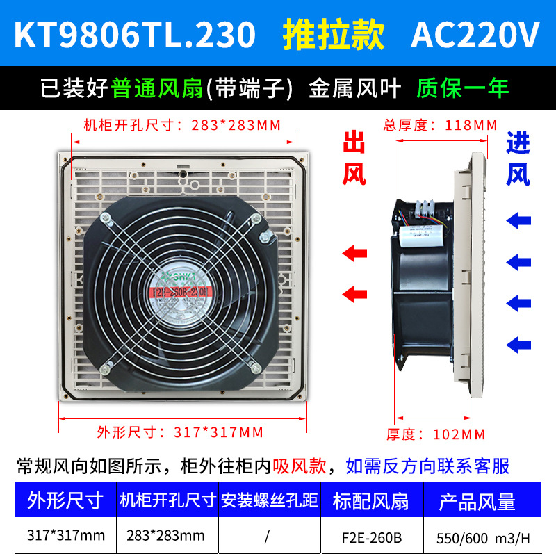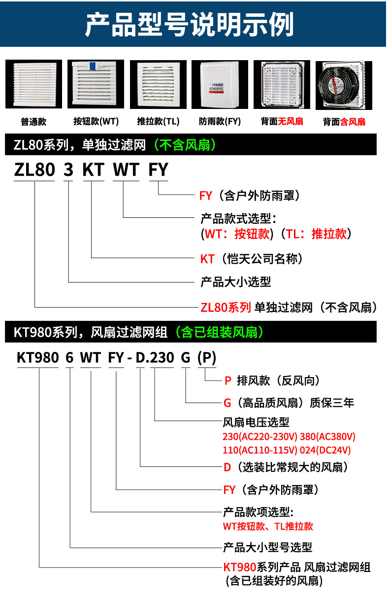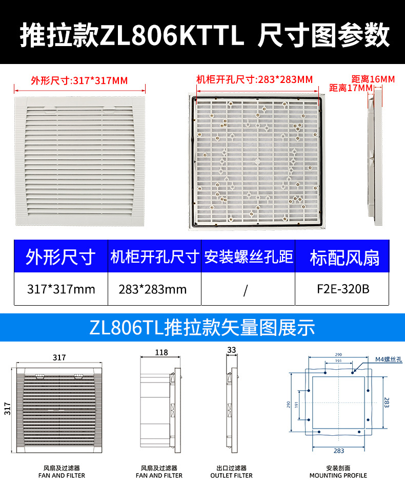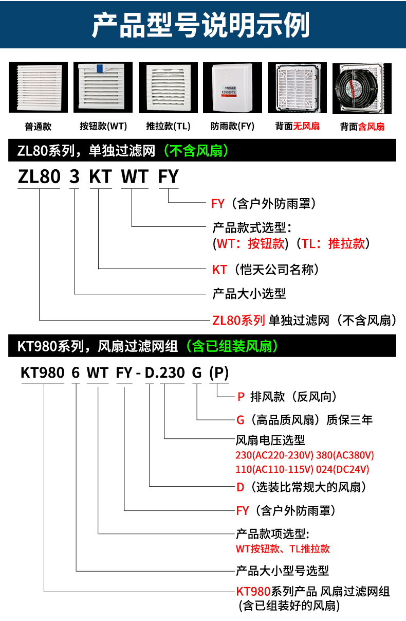 Kaitian SHKT 푸시-풀 환기 필터 세트 캐비닛 냉각 팬 블라인드 ZL803KTTL