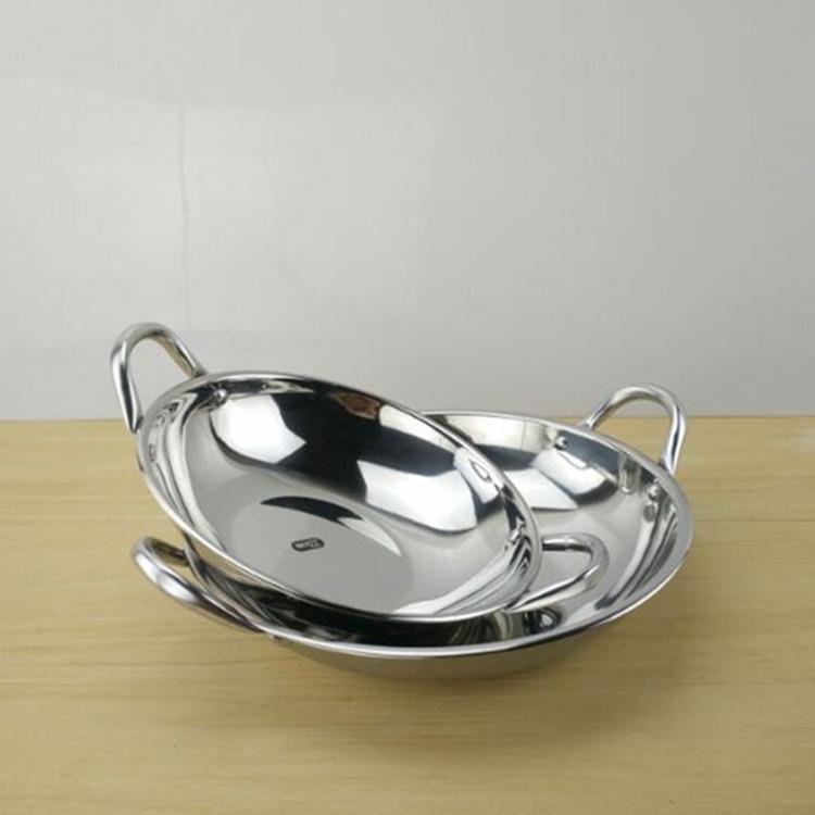 두꺼운 스테인레스 스틸 얕은 바닥 팬 바 Ding 상업용 소형 냄비 건조 냄비 알코올 스토브 냄비 분지 평평한 바닥 냄비스토어 가기