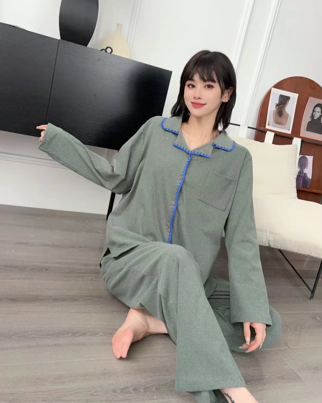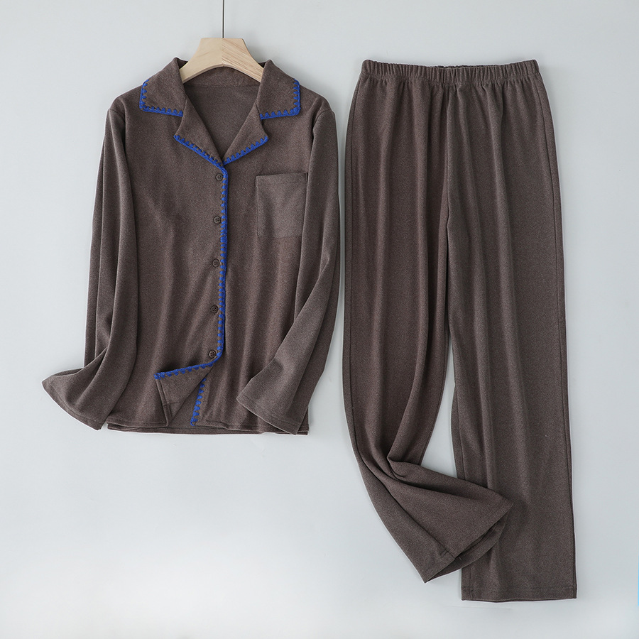 가을과 겨울 여성용 두꺼운 긴팔 따뜻한 벨벳 단색 심플 홈 세트 위한 한국 스타일 신상품 잠옷스토어 가기