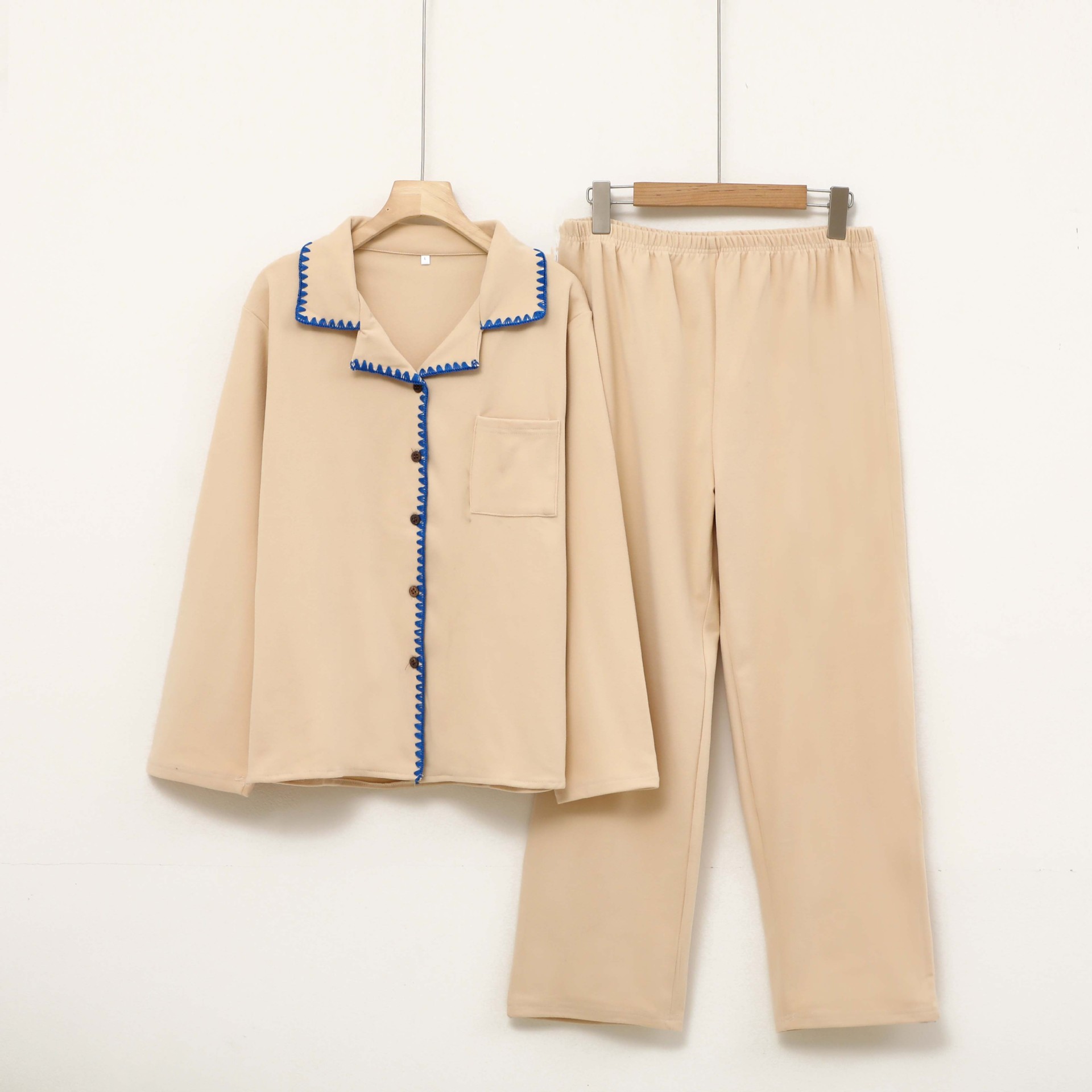 가을과 겨울 여성용 두꺼운 긴팔 따뜻한 벨벳 단색 심플 홈 세트 위한 한국 스타일 신상품 잠옷