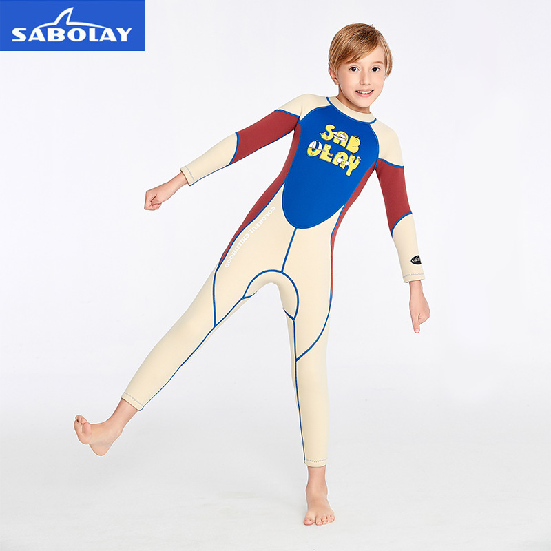 Shabaolai 어린이 다이빙 세트 2mm 소년 원피스 수영복 따뜻한 긴팔 자외선 차단제 다채로운 다이빙 세트 사용자 정의스토어 가기