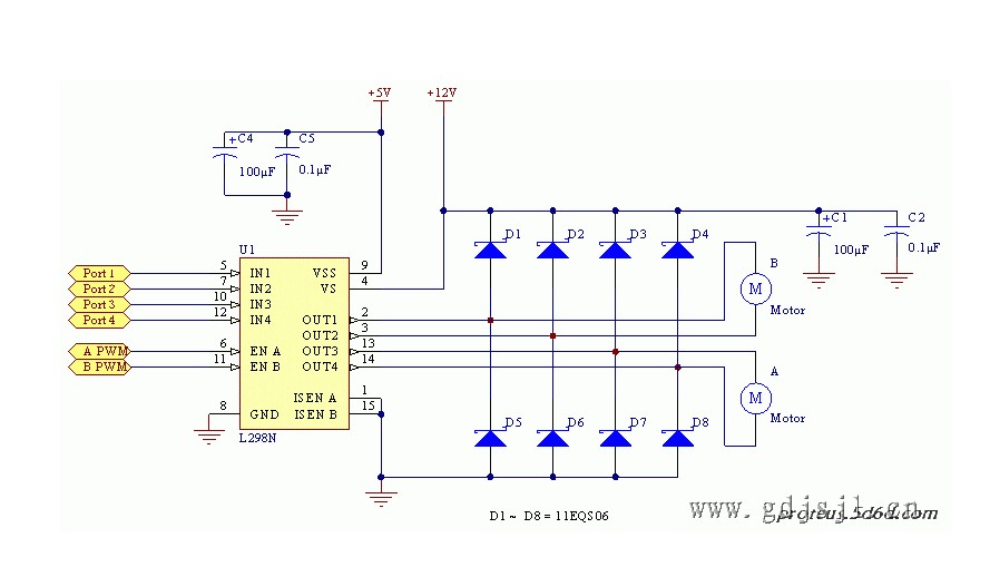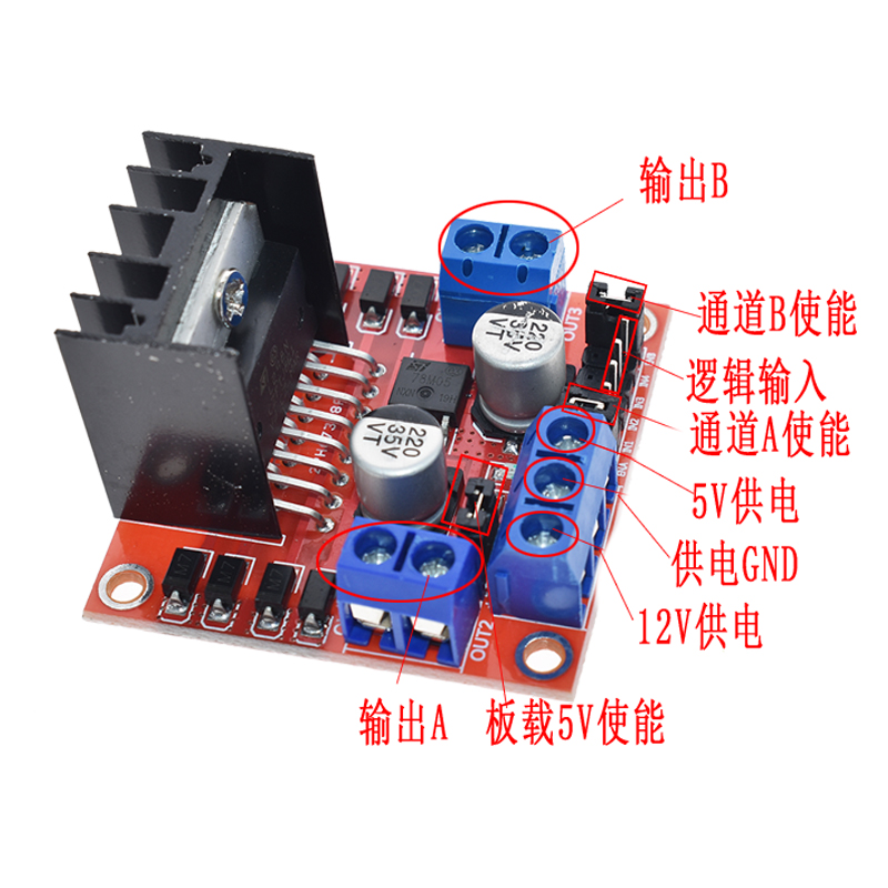 电压对L298N内部逻辑电路供电。(这种是高压驱动的非常规应用!)