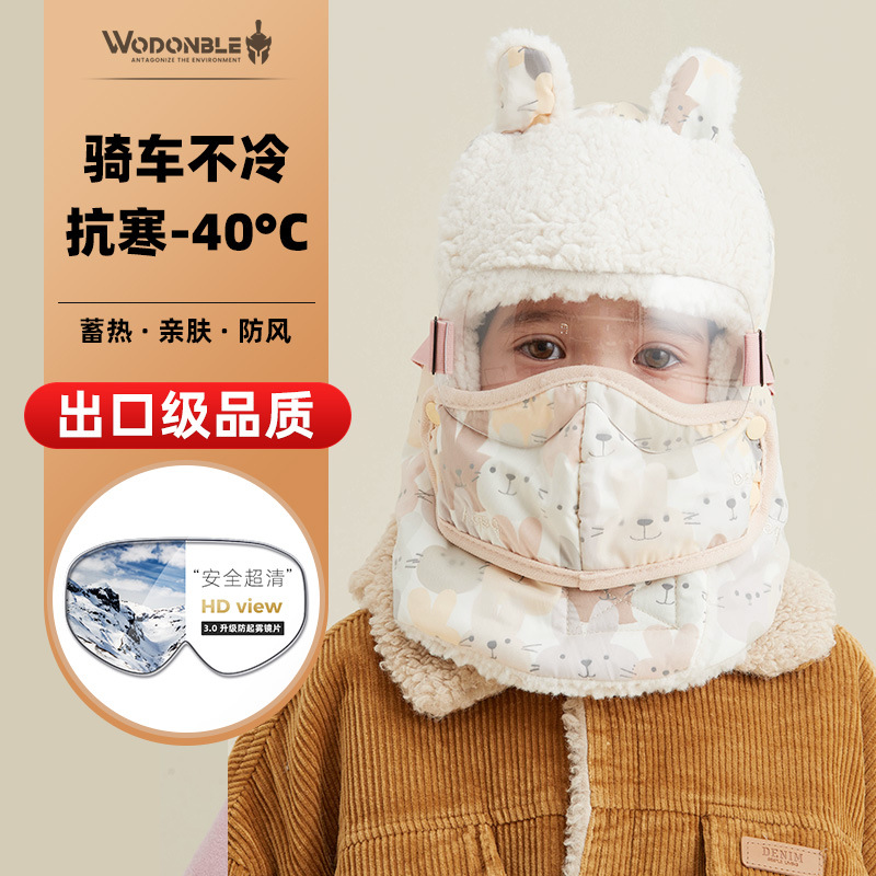 어린이 Lei Feng Hat 소년과 소녀 타고 전기 자동차 따뜻한 방한 방풍 모자 면과 벨벳 두꺼운 귀 보호대 겨울