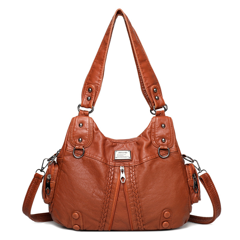 유럽과 미국 워싱 가죽 여성 가방 숄더백 2021 새로운 부드러운 가죽 중년 여성 백팩 실용적인 숄더 크로스 바디 백스토어 가기