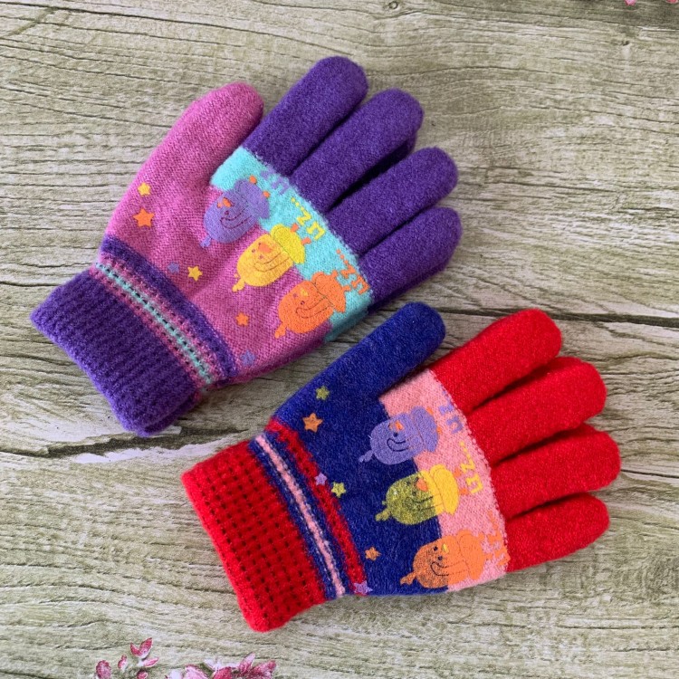 6-10 세 어린이 니트 양모 두 배 두꺼운 줄무늬 기모 초등학생을위한 야외 냉방풍 따뜻한 장갑스토어 가기