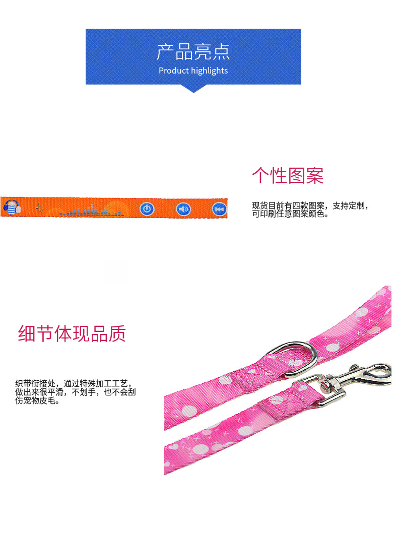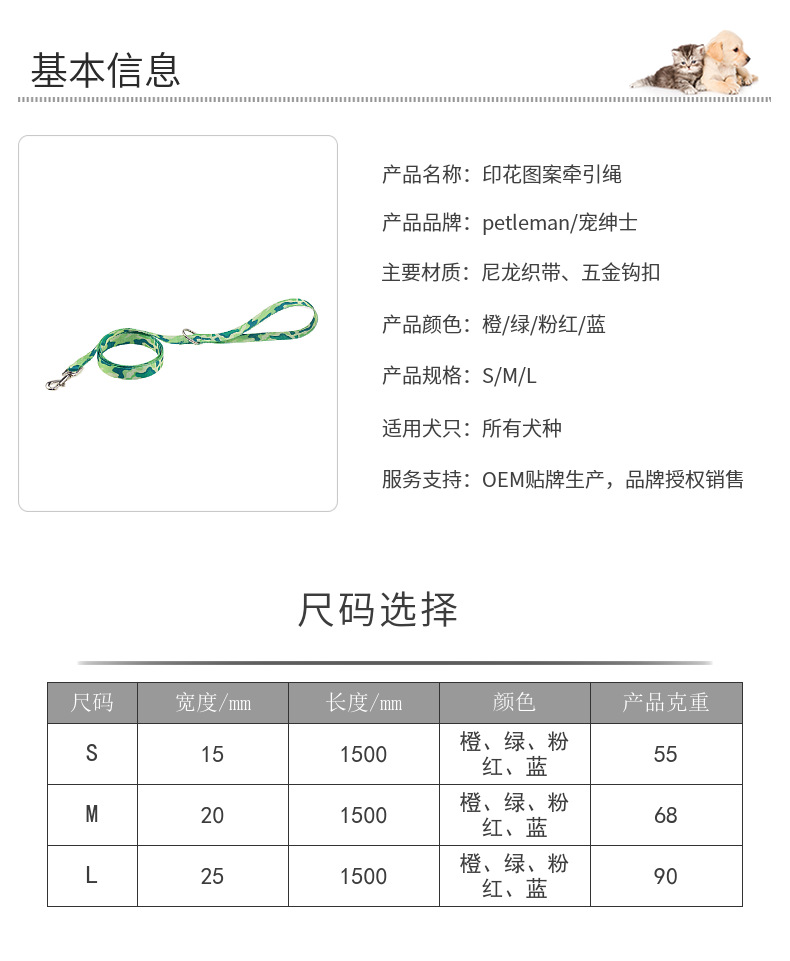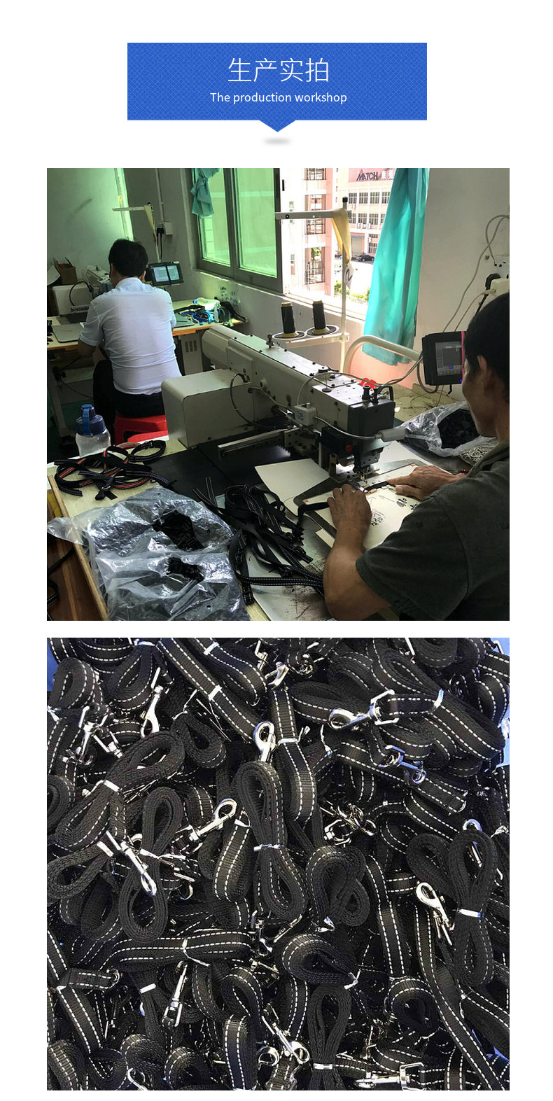 本厂研发生产销售各款式宠物牵引用品(胸背带、牵引绳、项圈等)。多年的生产经验,坚持以品质为生命力的经营理念发展,专注品质、专注细节、专注服务。欢迎业界朋友前来我厂参观指导。