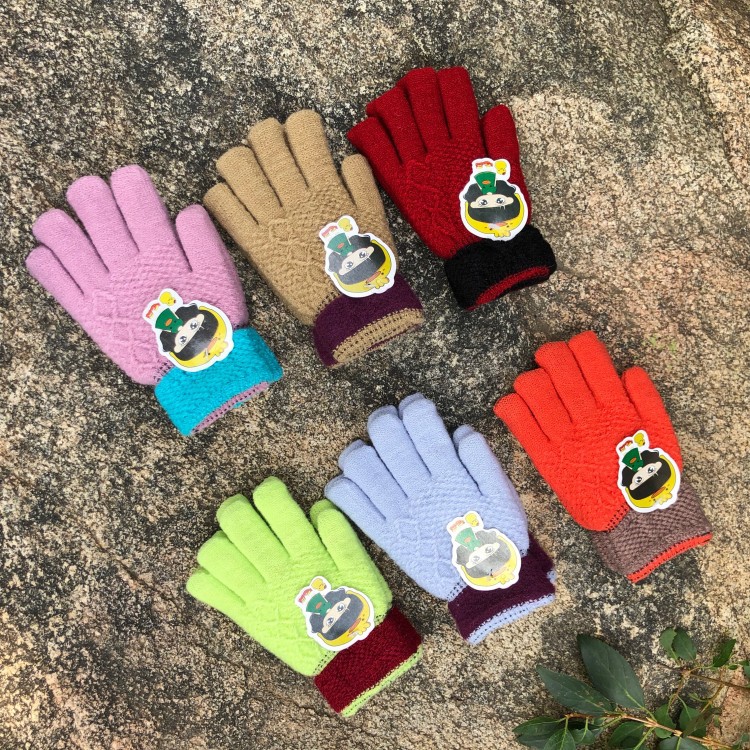 6-10 년 된 여아 초등학생 다채로운 귀여운 더블 두껍게 기모 니트 풀 핑거 따뜻한 방한 장갑