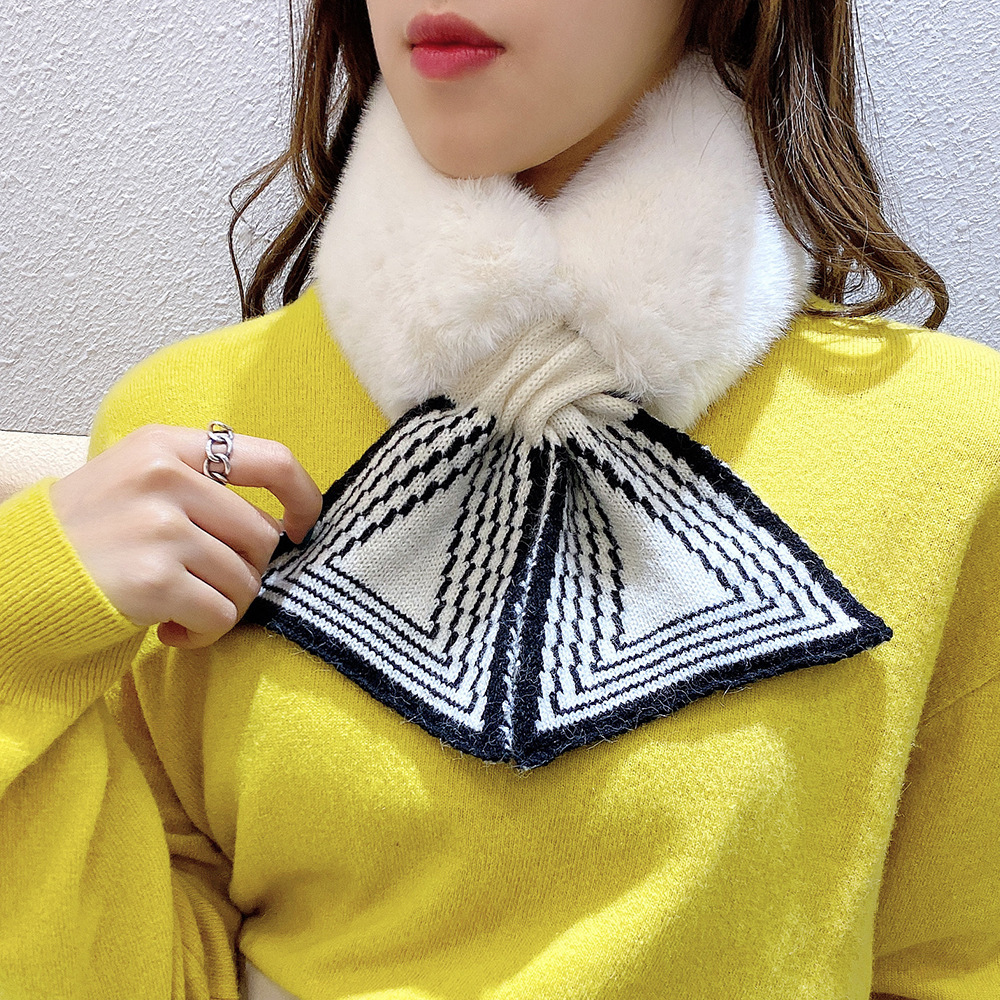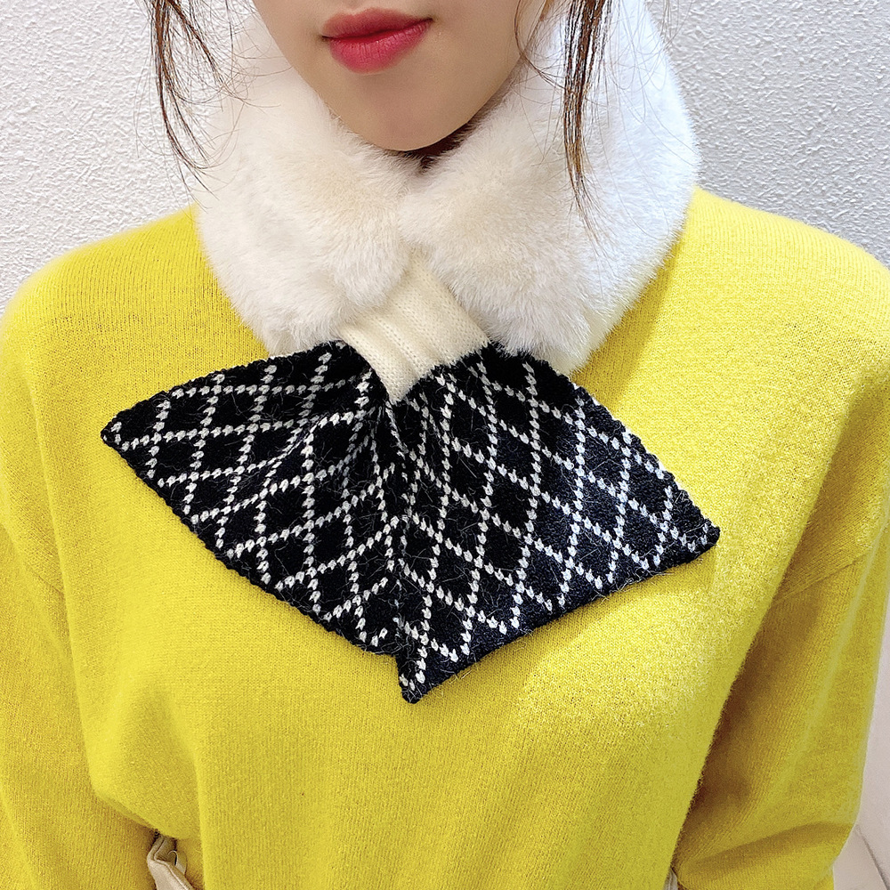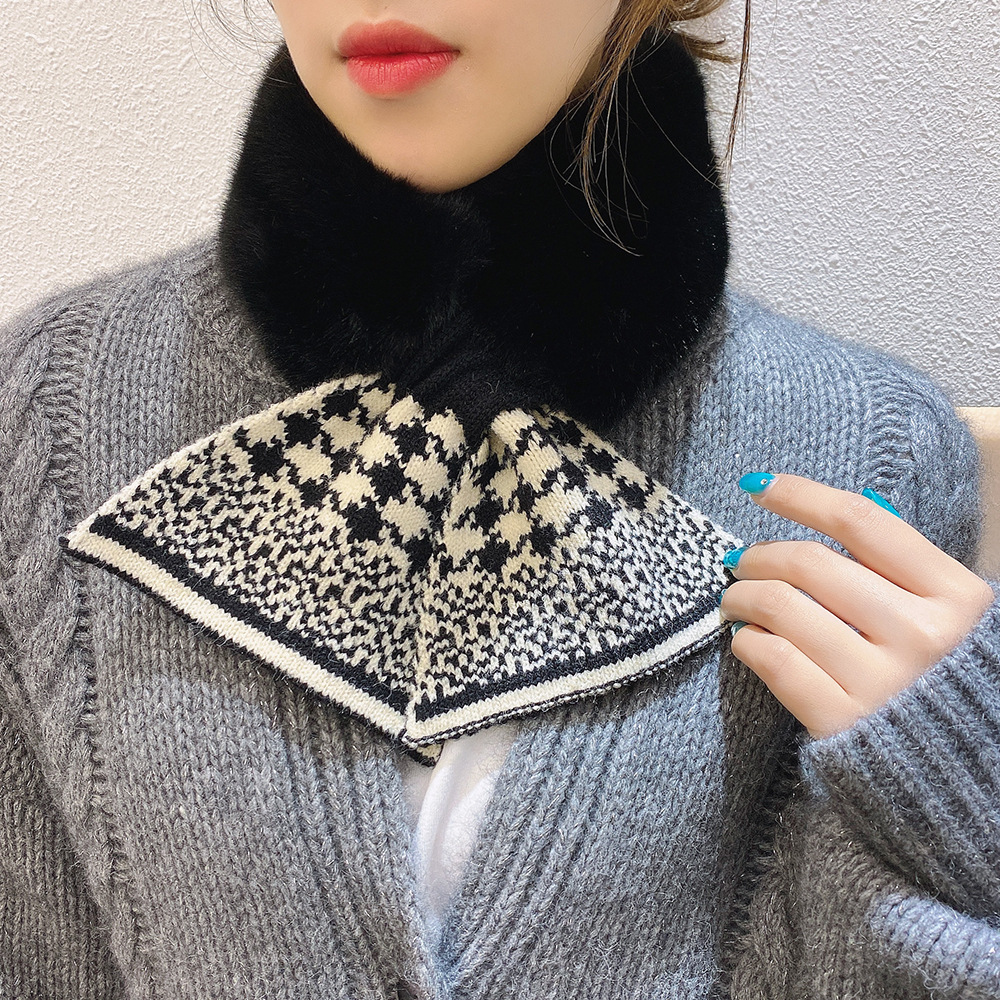 니트 봉제 스티칭 크로스 울 스카프 여성용 겨울 따뜻한 울 칼라 학생 목 보호
