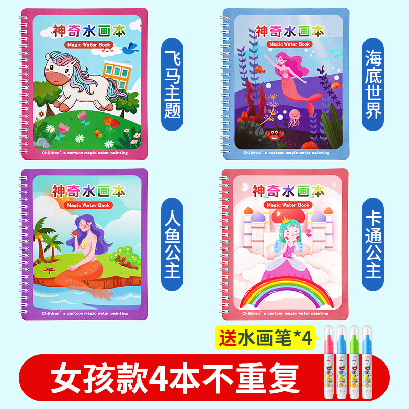 매직 워터 페인팅 북 클리어 워터 스트로크 그림책 소녀를위한 아기 교육 어린이 소년 장난감을위한 빨 그림책