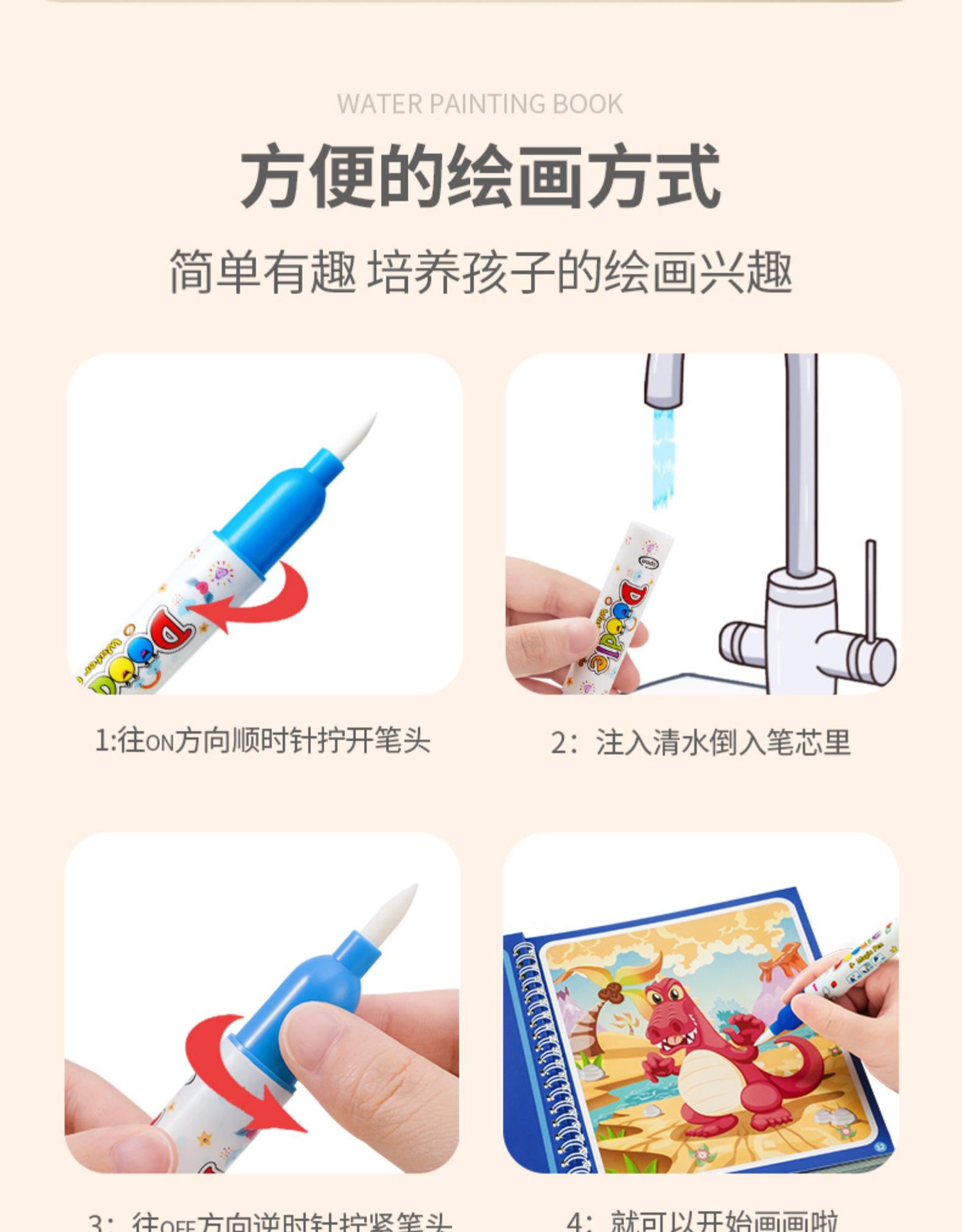 매직 워터 페인팅 북 클리어 워터 스트로크 그림책 소녀를위한 아기 교육 어린이 소년 장난감을위한 빨 그림책스토어 가기
