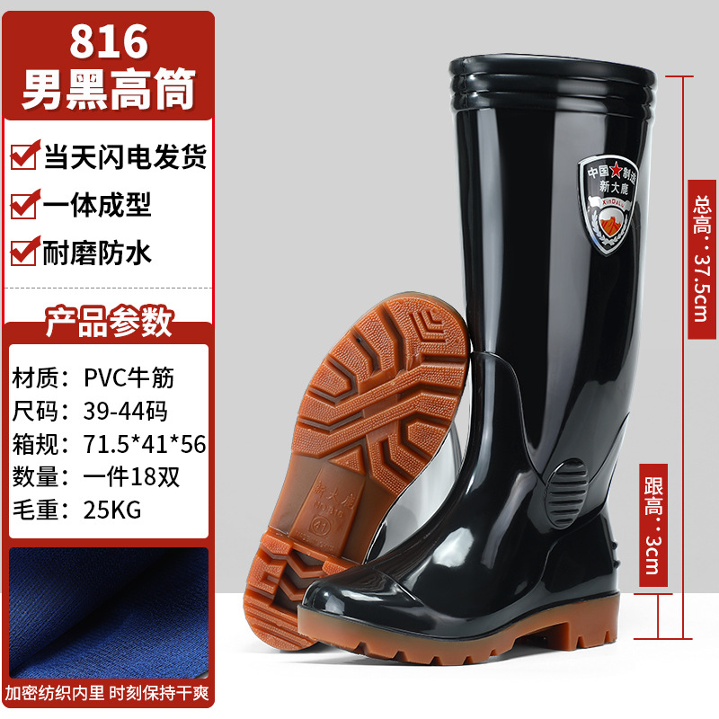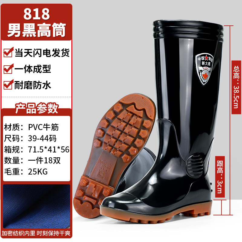 남성용 장화, 남성용 PVC 미끄럼 방지 방수 신발, 검정색 두꺼운 내마모성 노동 보호 건설 현장 고무 신발, 장화 도매