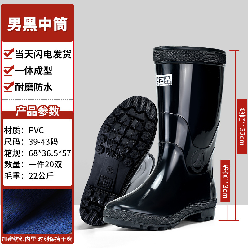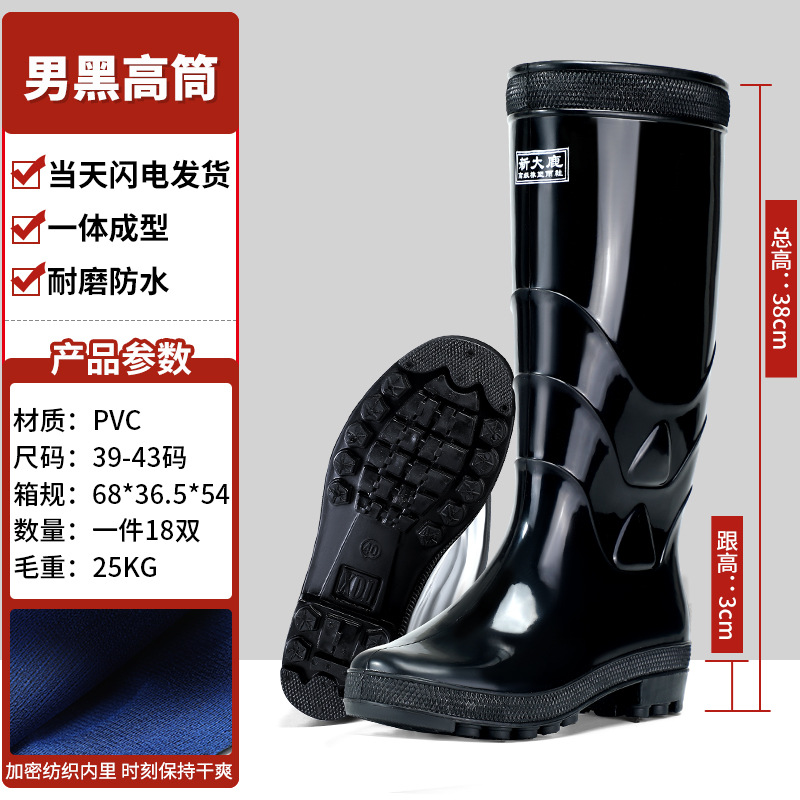 남성용 장화, 남성용 PVC 미끄럼 방지 방수 신발, 검정색 두꺼운 내마모성 노동 보호 건설 현장 고무 신발, 장화 도매스토어 가기