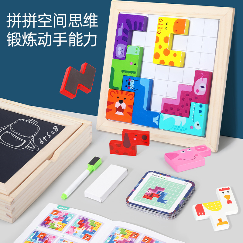 나무 3 대 1 마그네틱 만화 동물 퍼즐 테트리스 컬러인지 지능 퍼즐 장난감스토어 가기