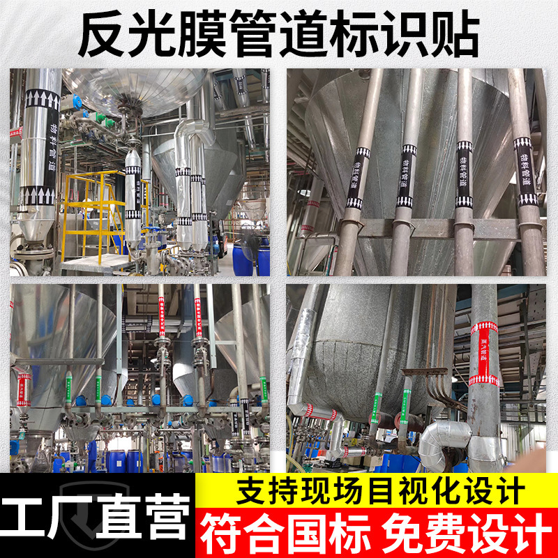 산업용 파이프 중간 흐름 화살표 로고 폴리에틸렌 반사 필름 파이프 컬러 링 자체 접착 라벨 커스터마이징스토어 가기