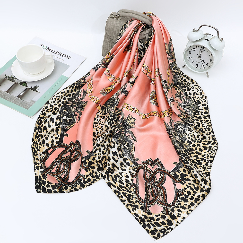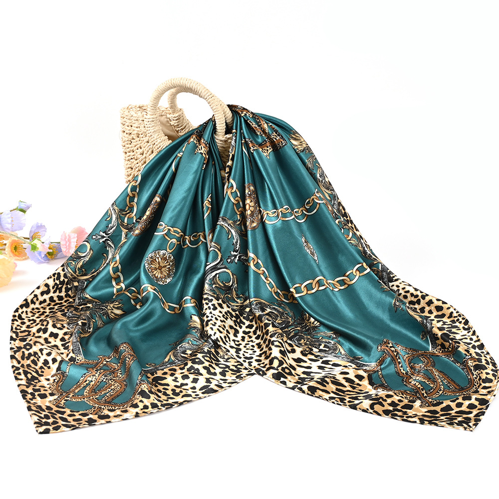 아마존 스카프 90cm 새틴 대형 스퀘어 캐리지 체인 인쇄 실크 스카프 랩 실크 스카프