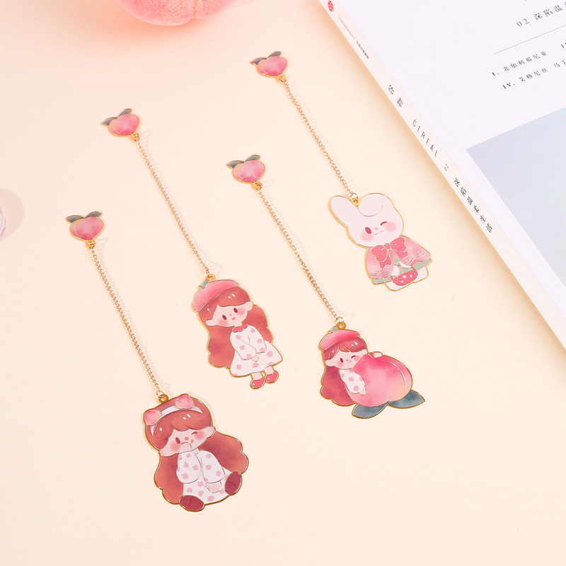 9 조각 금속 북마크 복숭아 복숭아 및 크림 토끼 학생 만화 금속 북마크 페이지 클립 절묘한 펜던트 북마크