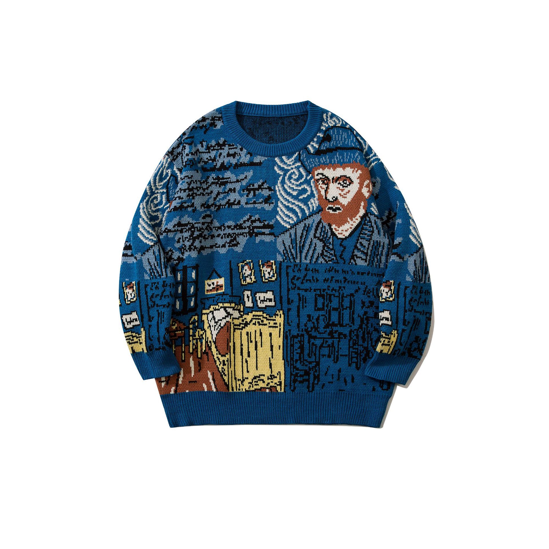 YWFG 패션 브랜드 가을과 겨울 커플 캐주얼 게으른 스타일 남성용 느슨한 일본 니트 스웨터 풀 페인트 낙서 스웨터스토어 가기