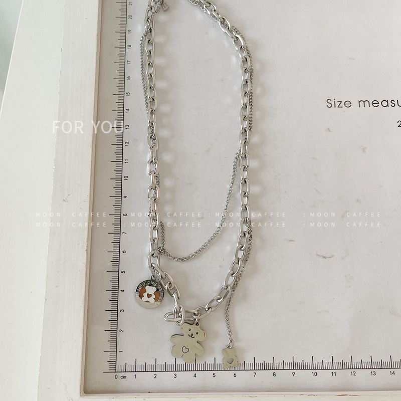 전체 티타늄 스틸 곰 펜던트 목걸이 캐주얼 펑크 스타일 남성과 여성의 같은 스타일 만화 재미있는 쇄골 체인 스웨터 체인 유행