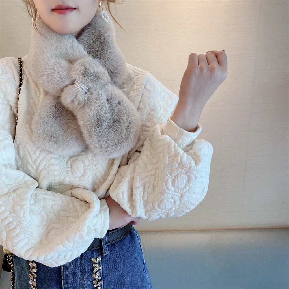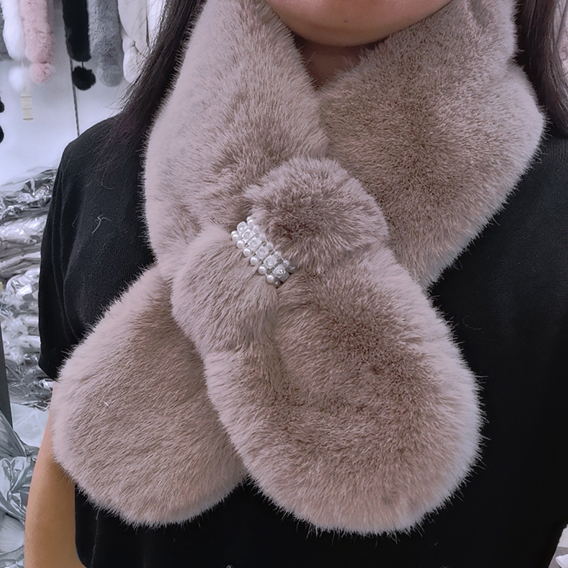 2021 새로운 진주 다이아몬드 플러시 스카프 모조 토끼 모피 스카프 여성의 유행 야외 두꺼운 따뜻한 목 보호 목 소매스토어 가기