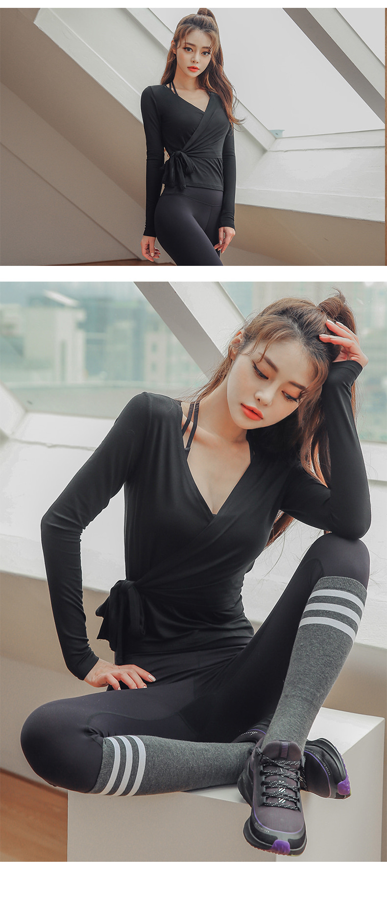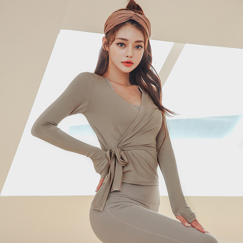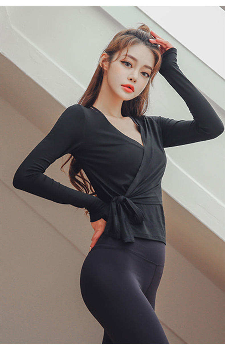 가을 겨울 신상 끈 달린 긴팔 스포츠 피트니스 요가 탑 여성용 인스 한국 패션 트렌드 요가복 티셔츠스토어 가기