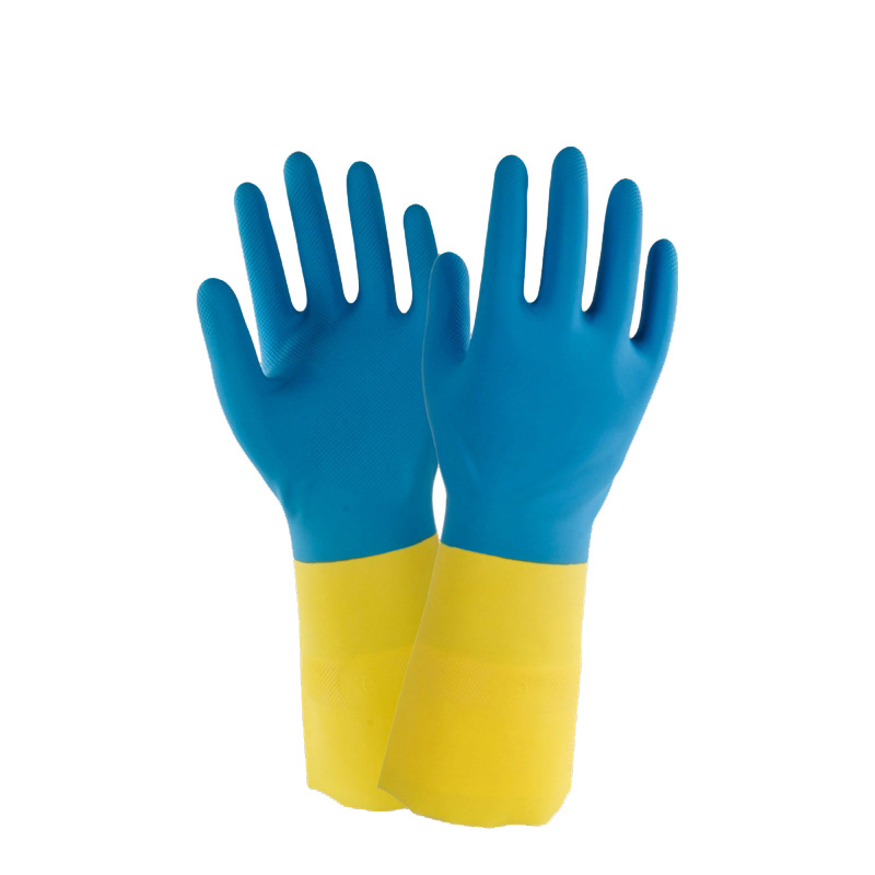 HTR 10-228 무리 라이닝 안티 화학 비 슬립 고무 2 색 안티 화학 장갑 고무 노동 보호