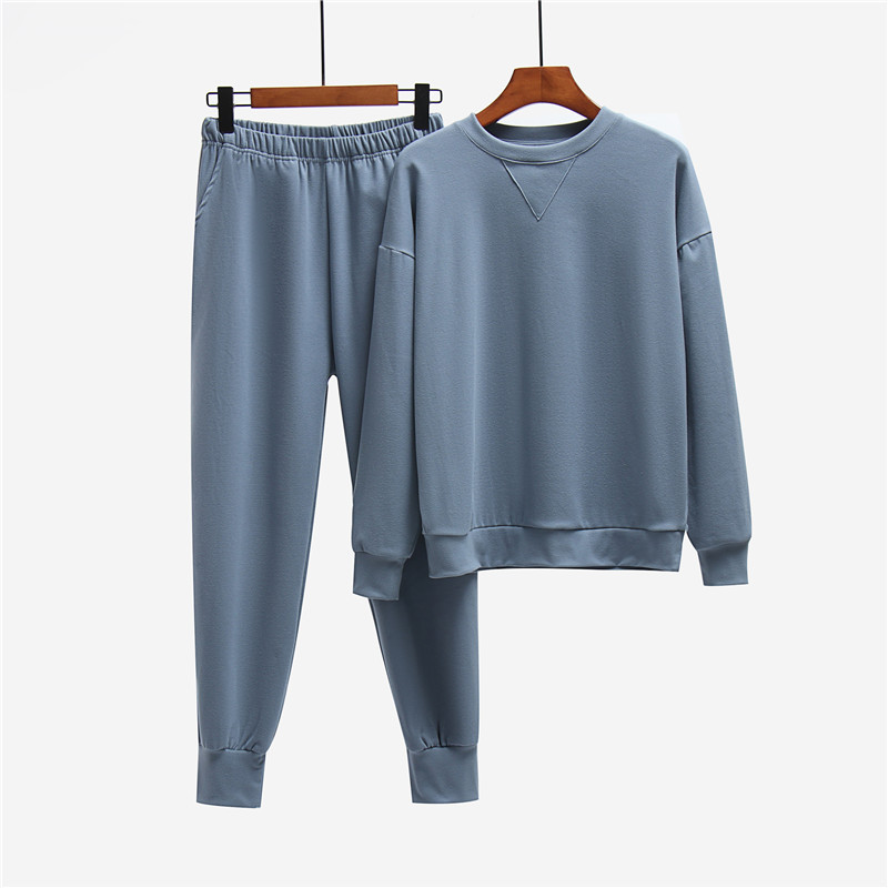 남자의 기모 두꺼운 가정 옷 세트 스웨터 스웨터 바지 남성과 여성을위한 투피스 세트 따뜻한 겉옷 잠옷 가을과 겨울스토어 가기