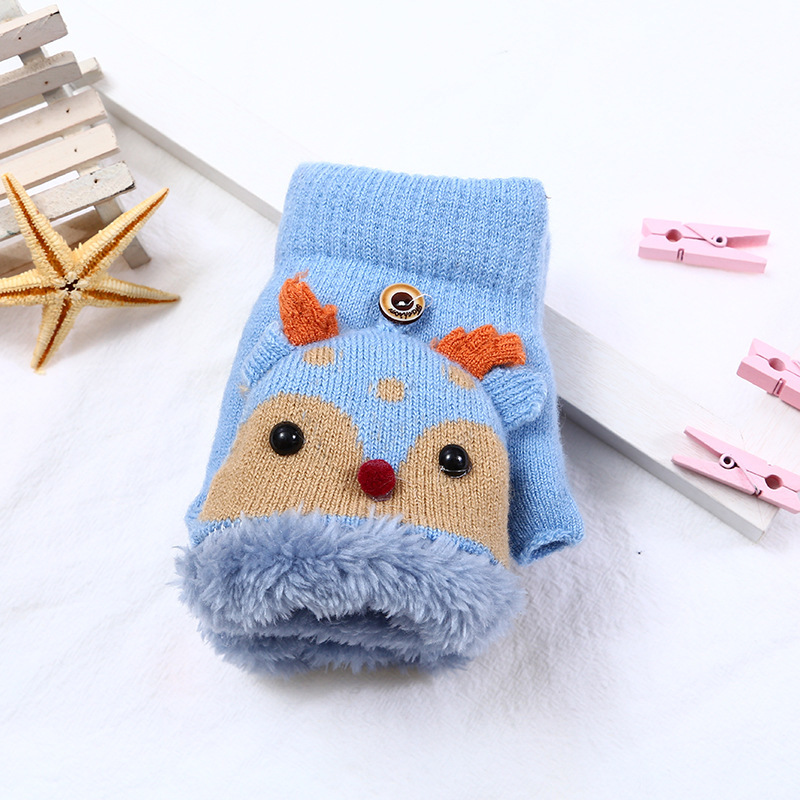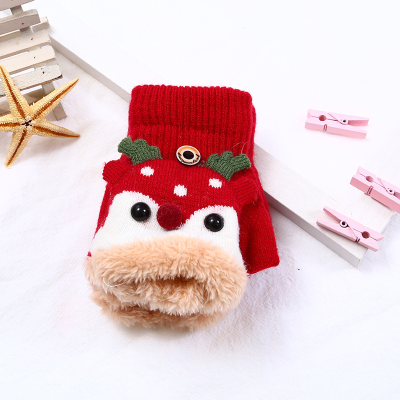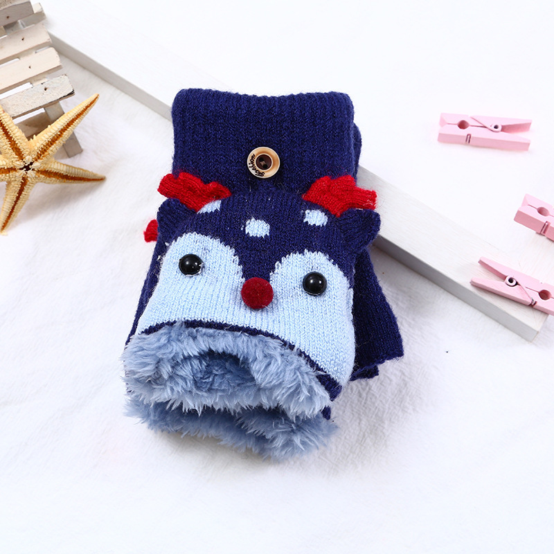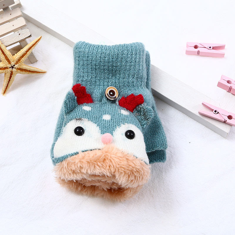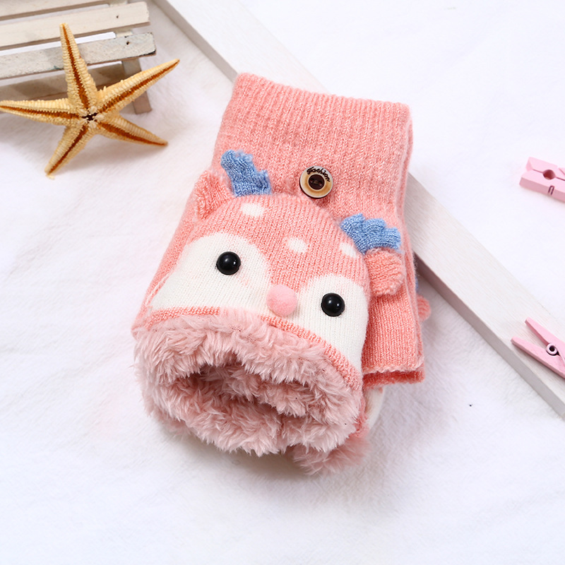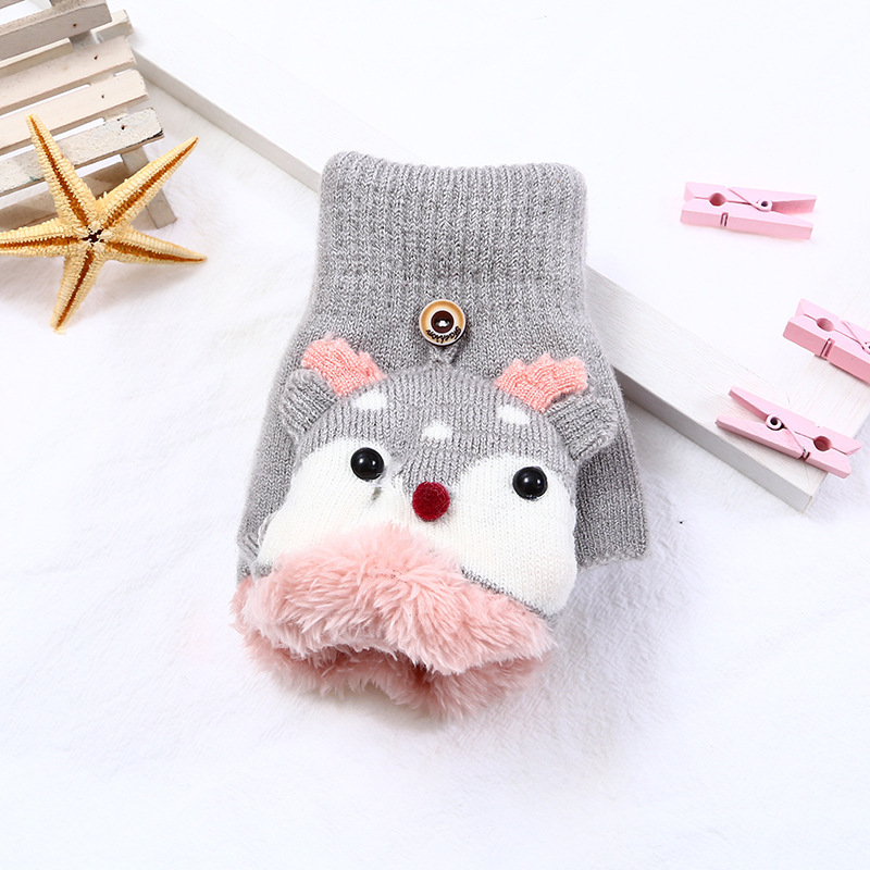 어린이 엘크 플립 장갑 기모 두꺼운 따뜻한 장갑 손가락 소녀의 만화 헤어 가방 귀여운 장갑