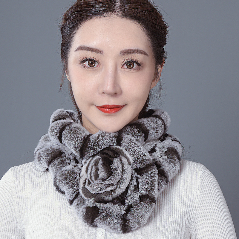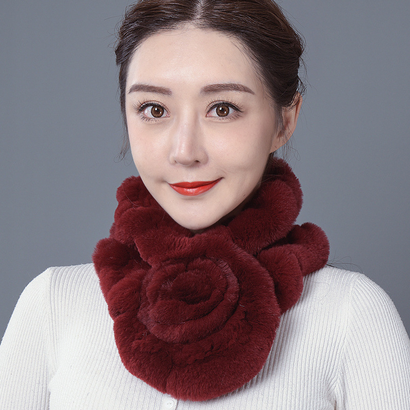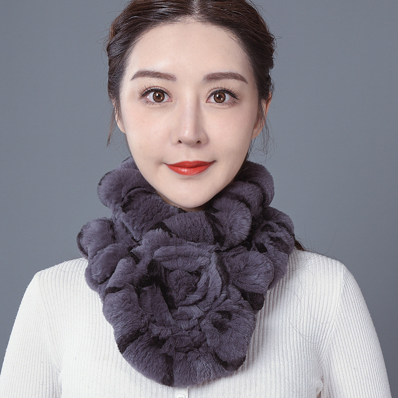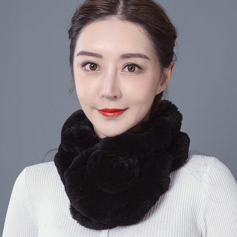 한국 스타일 모피 스카프 겨울 새로운 따뜻한 두꺼운 양면 렉스 토끼 모피 스카프 주름 귀 가장자리 여성 모피 칼라