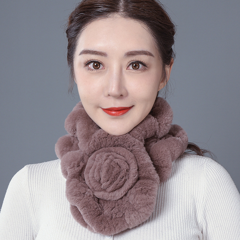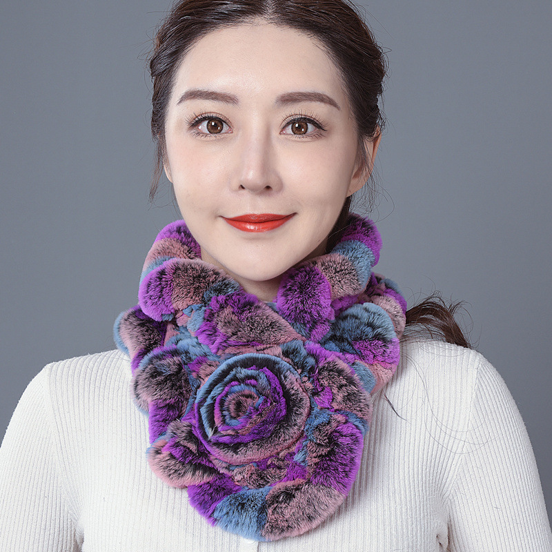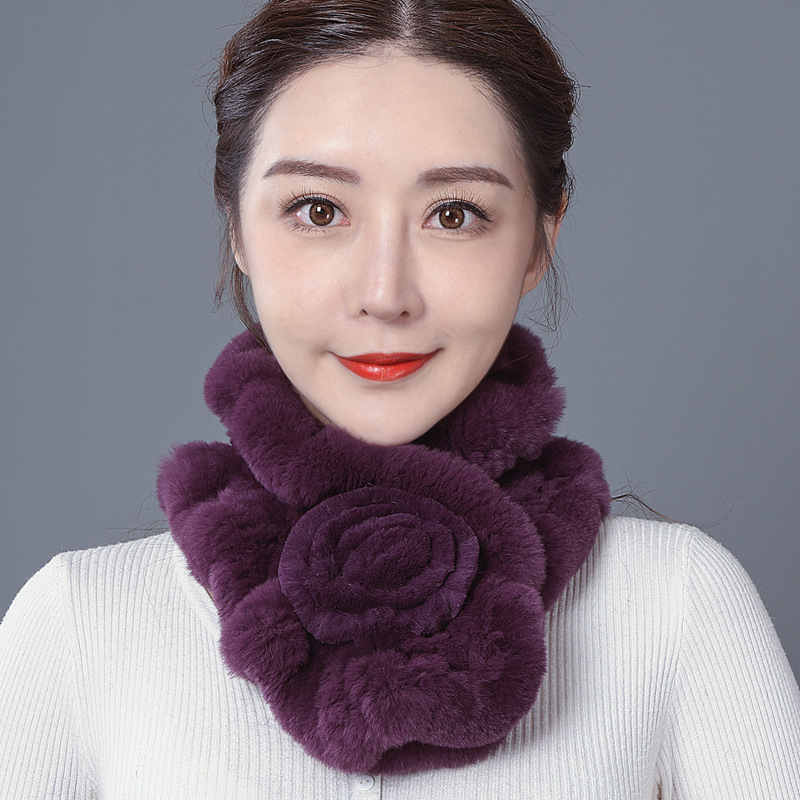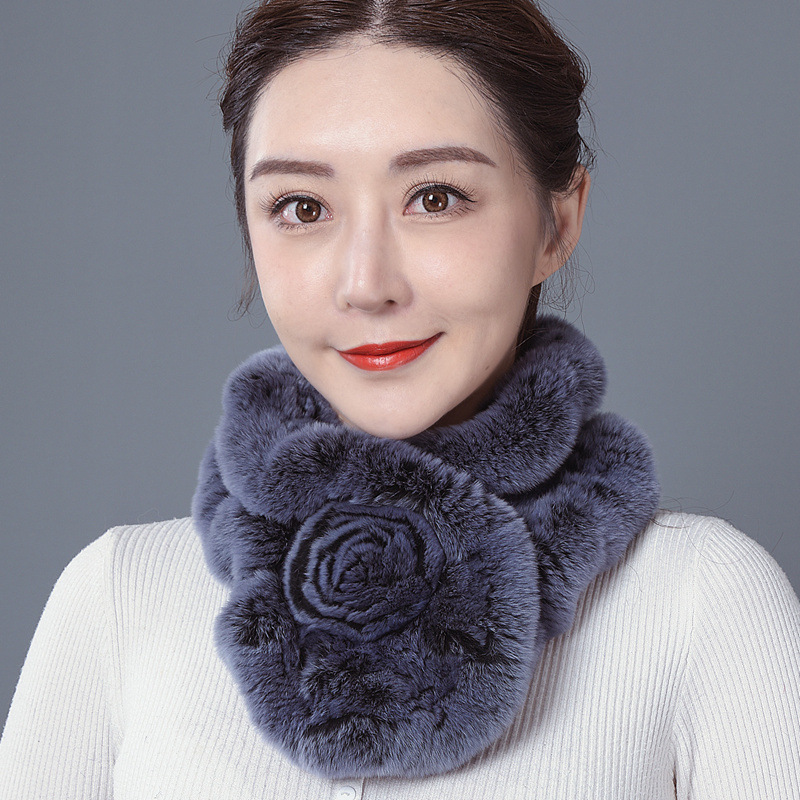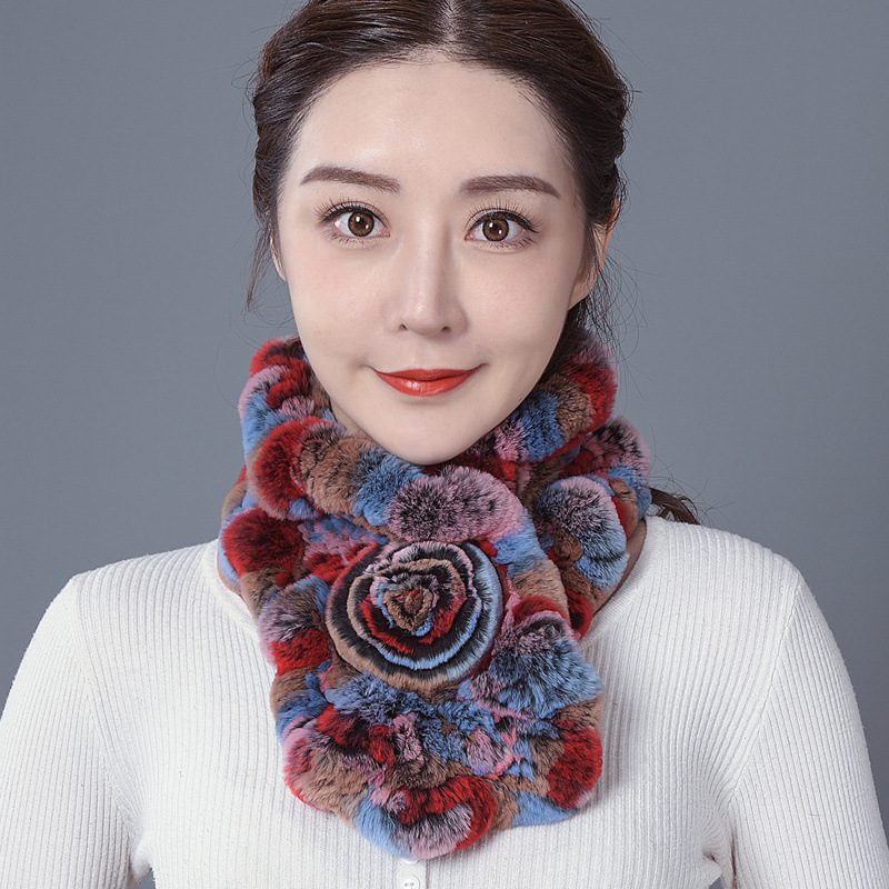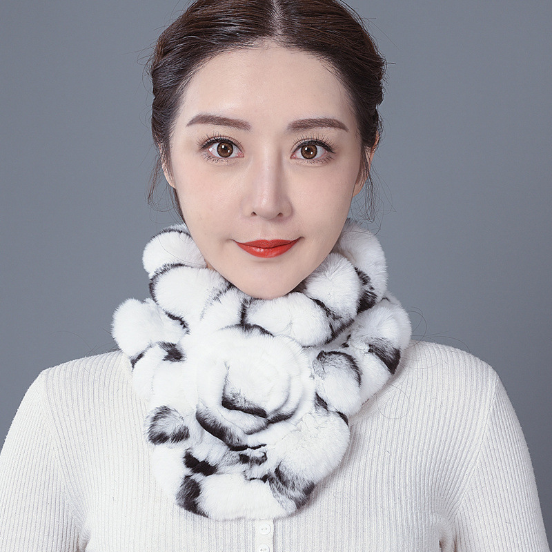 한국 스타일 모피 스카프 겨울 새로운 따뜻한 두꺼운 양면 렉스 토끼 모피 스카프 주름 귀 가장자리 여성 모피 칼라스토어 가기
