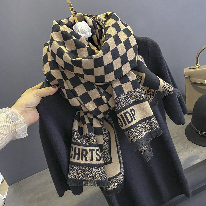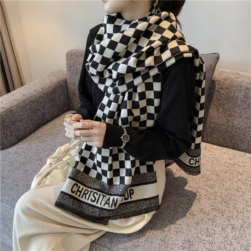 2023 새로운 사이버 연예인 바둑판 스카프 여성용 가을과 겨울 한국식 캐시미어 이중 목적 숄 두꺼운 따뜻한 목스토어 가기