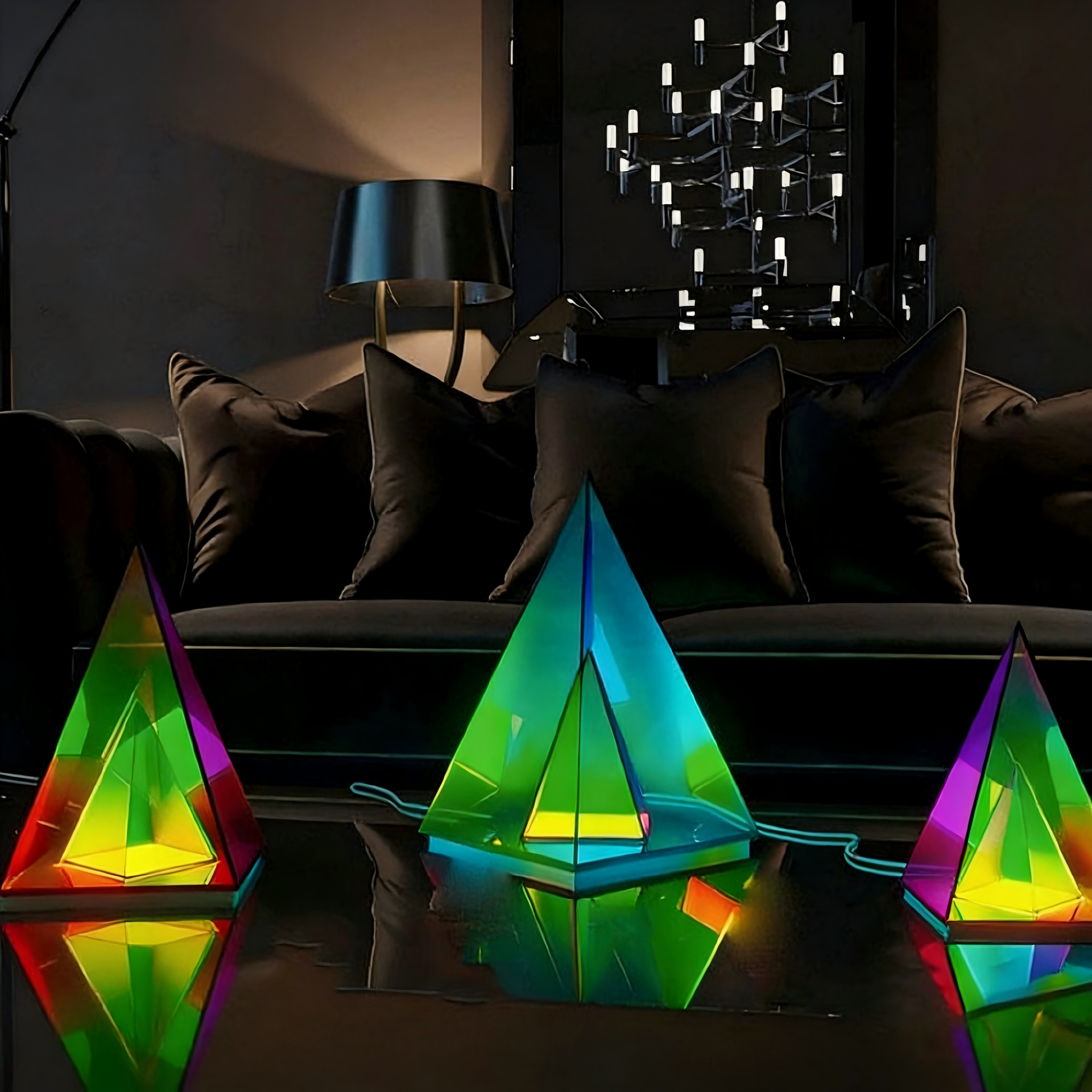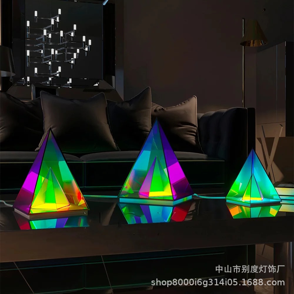 국경을 넘는 NOXU 제조업체 아크릴 삼각형 매직 큐브 RGB 다채로운 장식용 테이블 램프 개성 있는 야간 조명 조광 가능