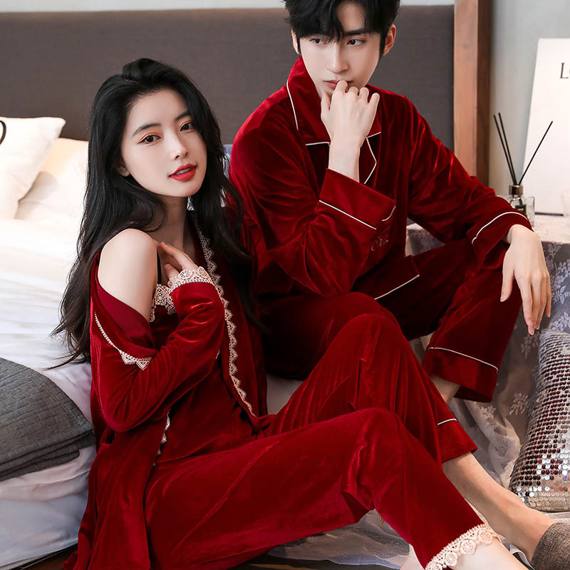 공장 연인 잠옷 황금 벨벳 봄 가을 겨울 섹시한 여성 3 피스 남성 청소년 2 피스 세트