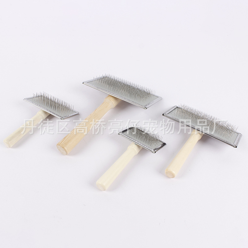 사용자 정의 나무 손잡이 애완 동물 브러시 고양이와 개 아름다움 오픈 매듭 바늘 빗 머리 제거 플로트 스테인레스 스틸 빗 모피 작은 브러시