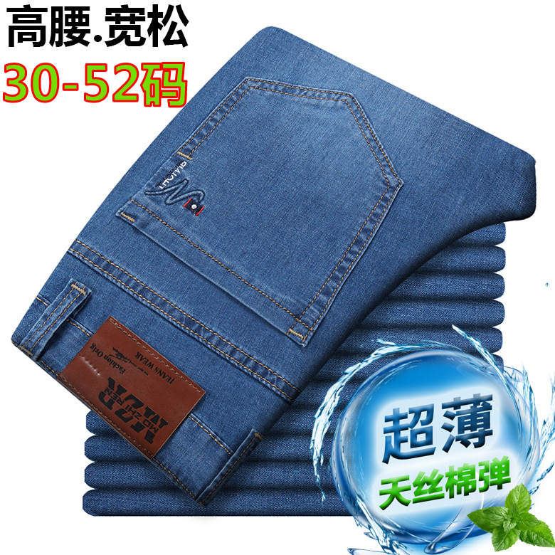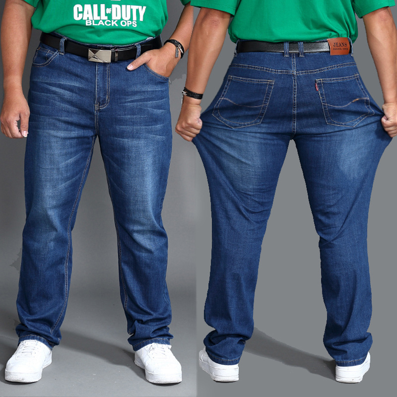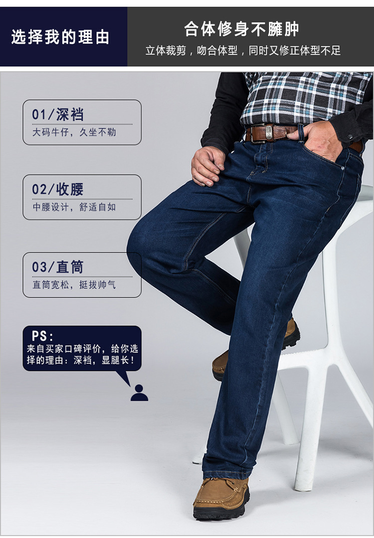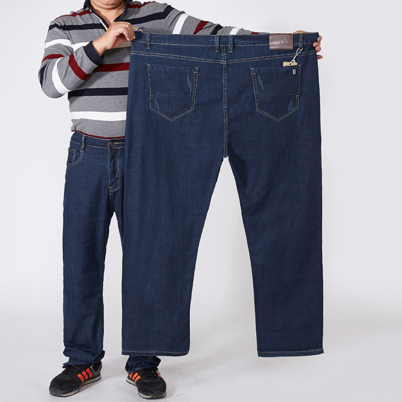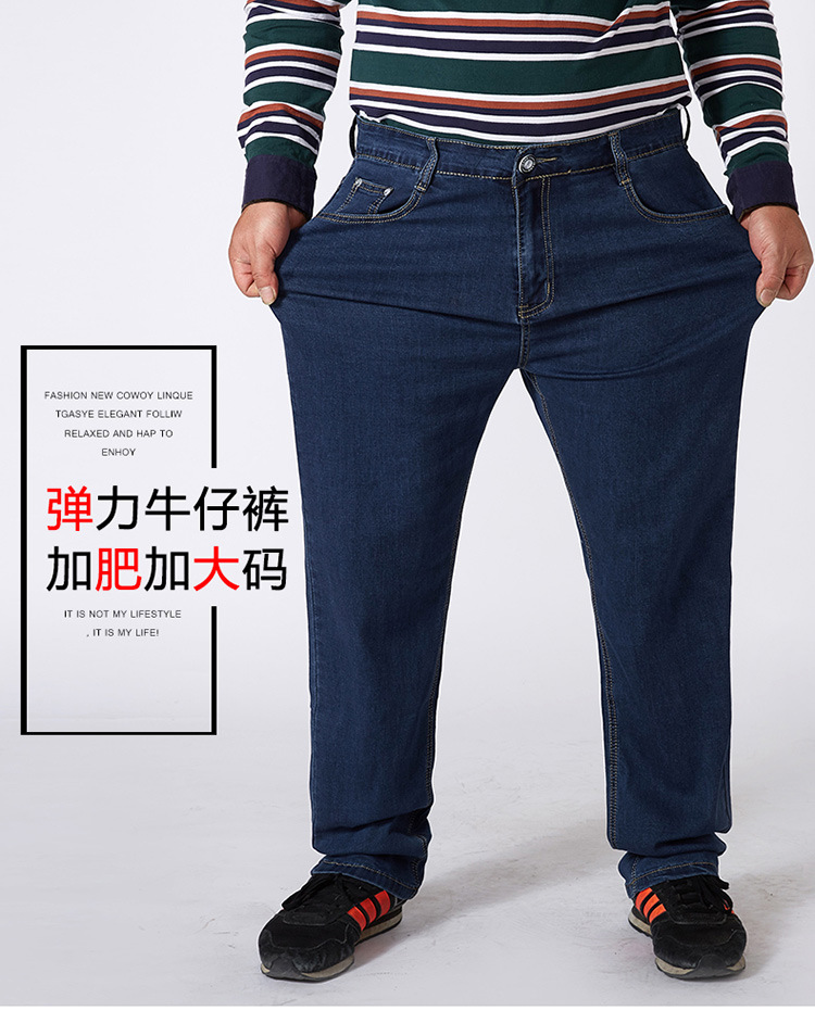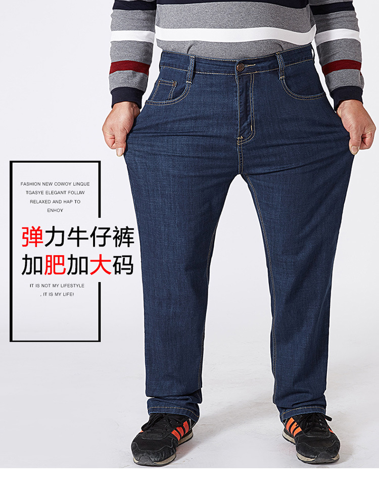 중년 특대 아빠 높은 허리 청바지 남자의 뚱뚱한 느슨한 스트레이트 튜브 플러스 지방 플러스 사이즈 두꺼운 200kg스토어 가기