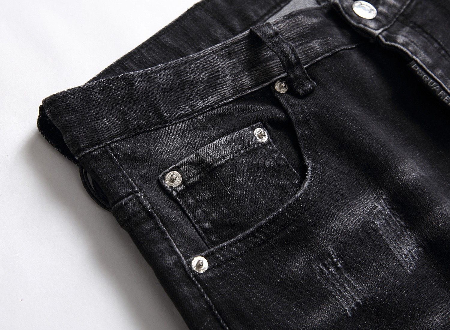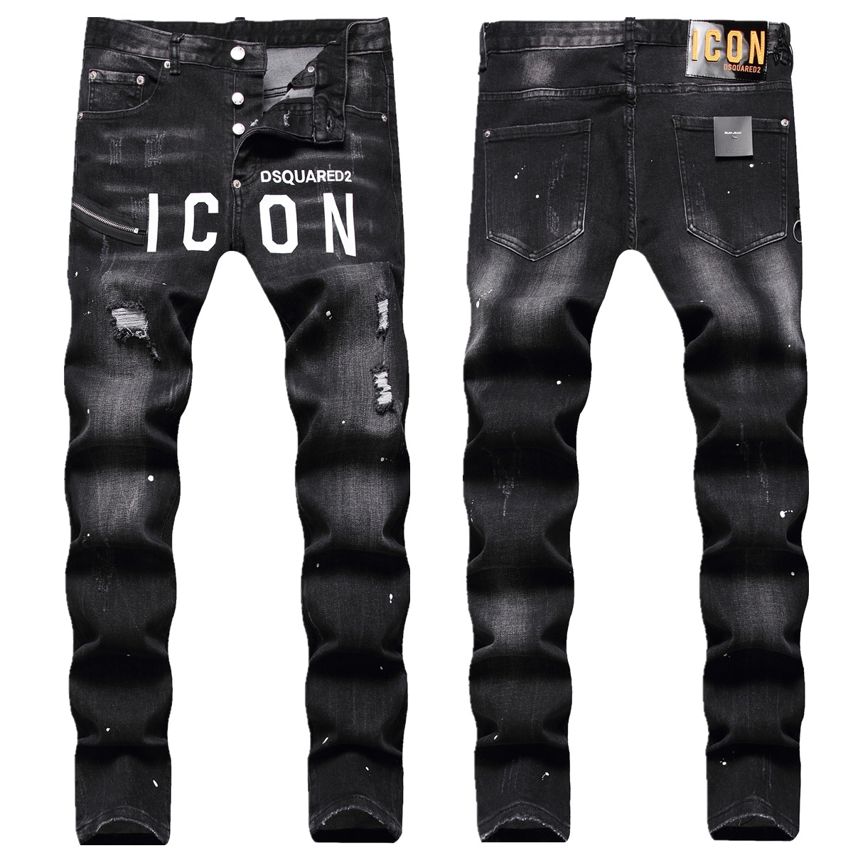 유럽과 미국 패션 브랜드 찢어진 자수 무질서한 라인 내부 지퍼 장식 디지털 컬러 인쇄 슬림핏 스트레치 청바지 남성스토어 가기