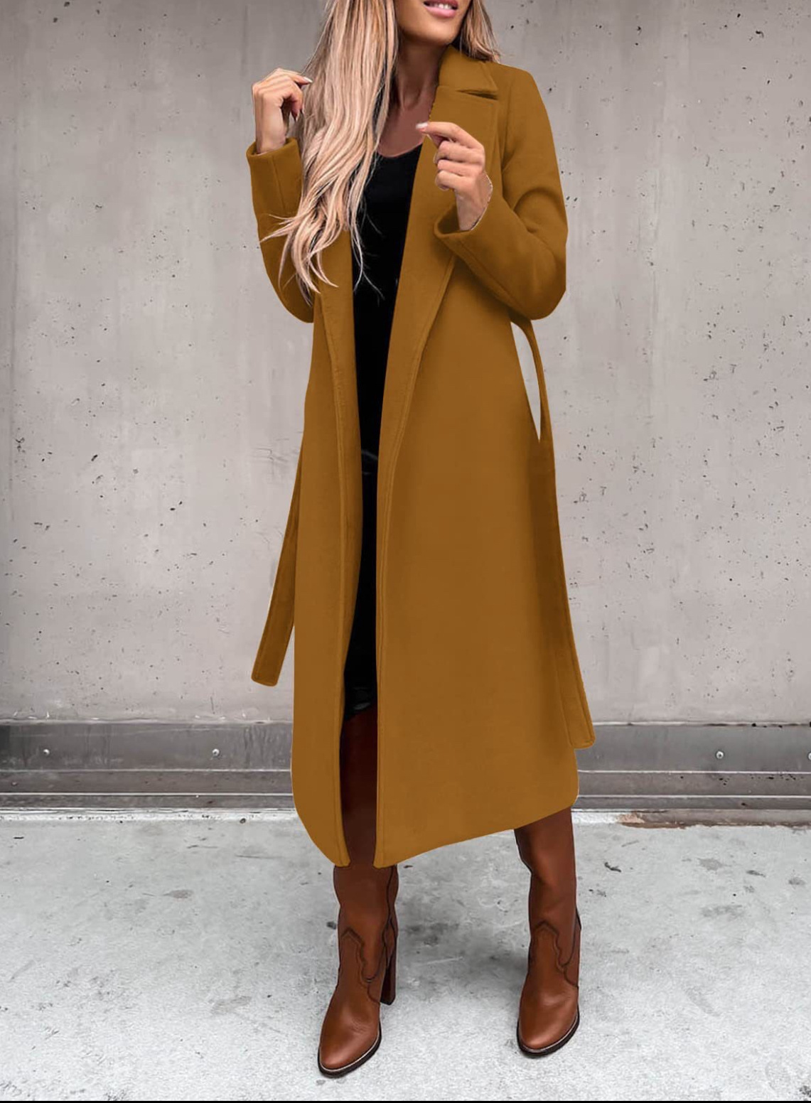 2024 아마존 폭발 독립 역 소원 봄과 가을 모직 코트 간단한 패션 V 넥 스트랩 롱 코트 여성용스토어 가기