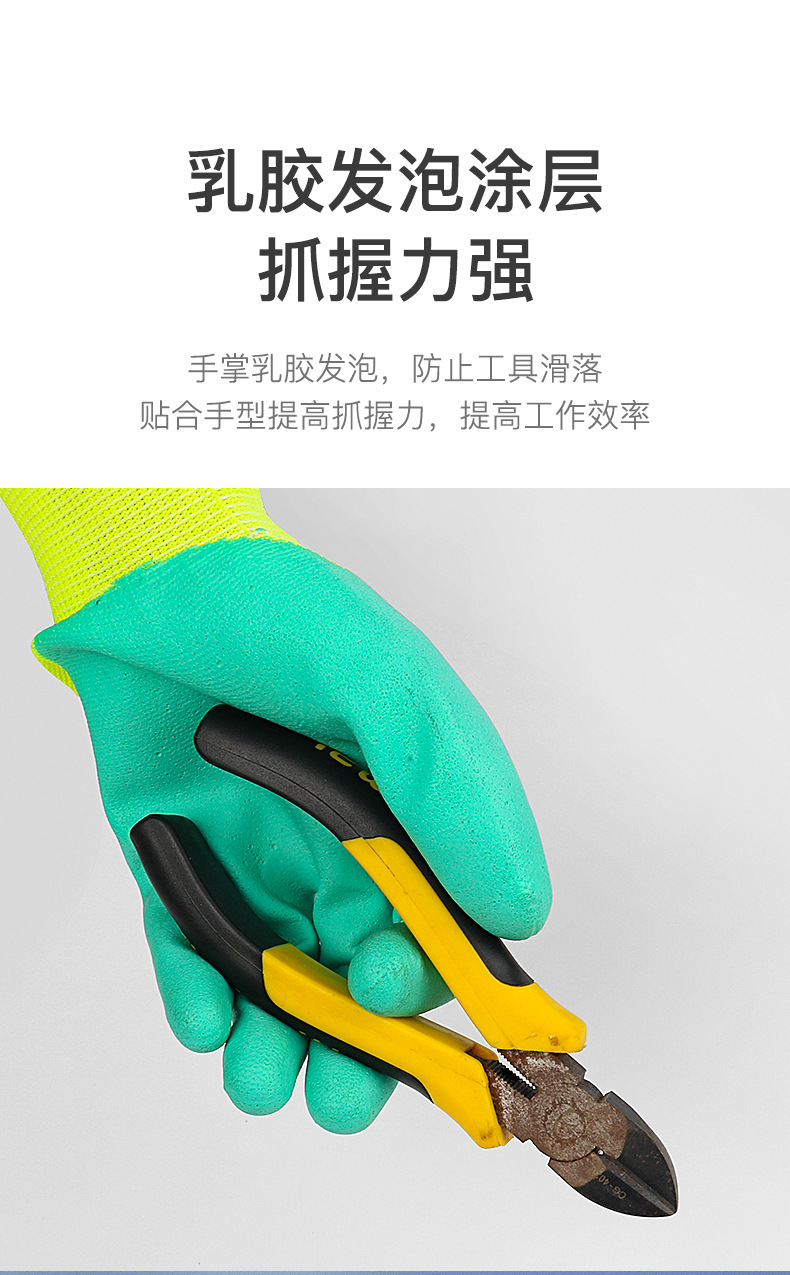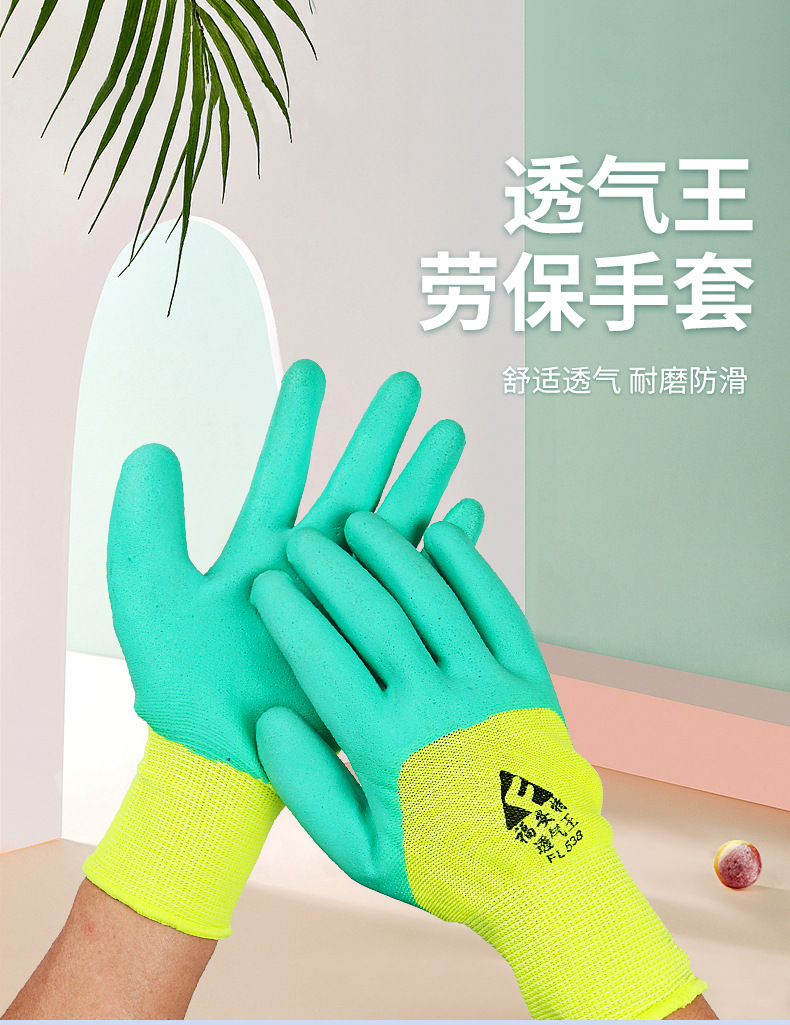 노동 장갑 13 핀 나일론 담근 장갑 통기성 킹 강화 손가락 미끄럼 방지 내마모성 주름 고무 장갑 도매