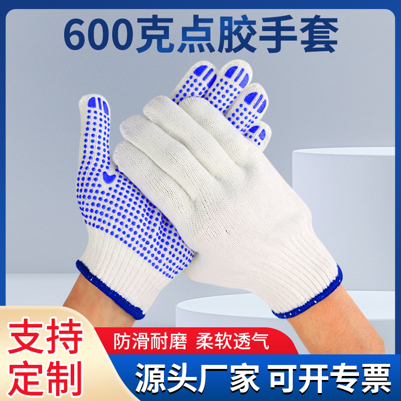 와우 맞춤형 표백 면사 란점 플라스틱 장갑 600g 점착제 도포 미끄럼 방지 노동 보호 장갑