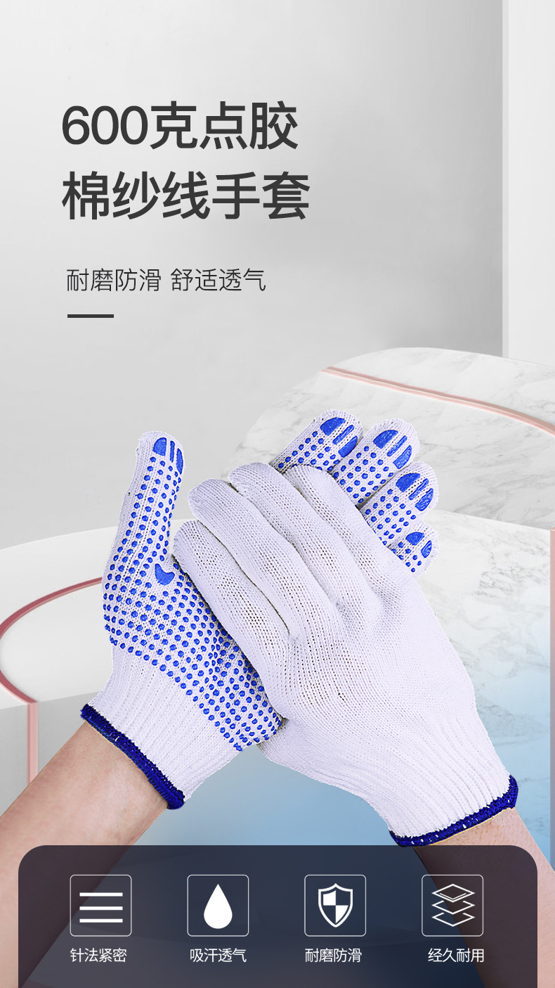 와우 맞춤형 표백 면사 란점 플라스틱 장갑 600g 점착제 도포 미끄럼 방지 노동 보호 장갑스토어 가기