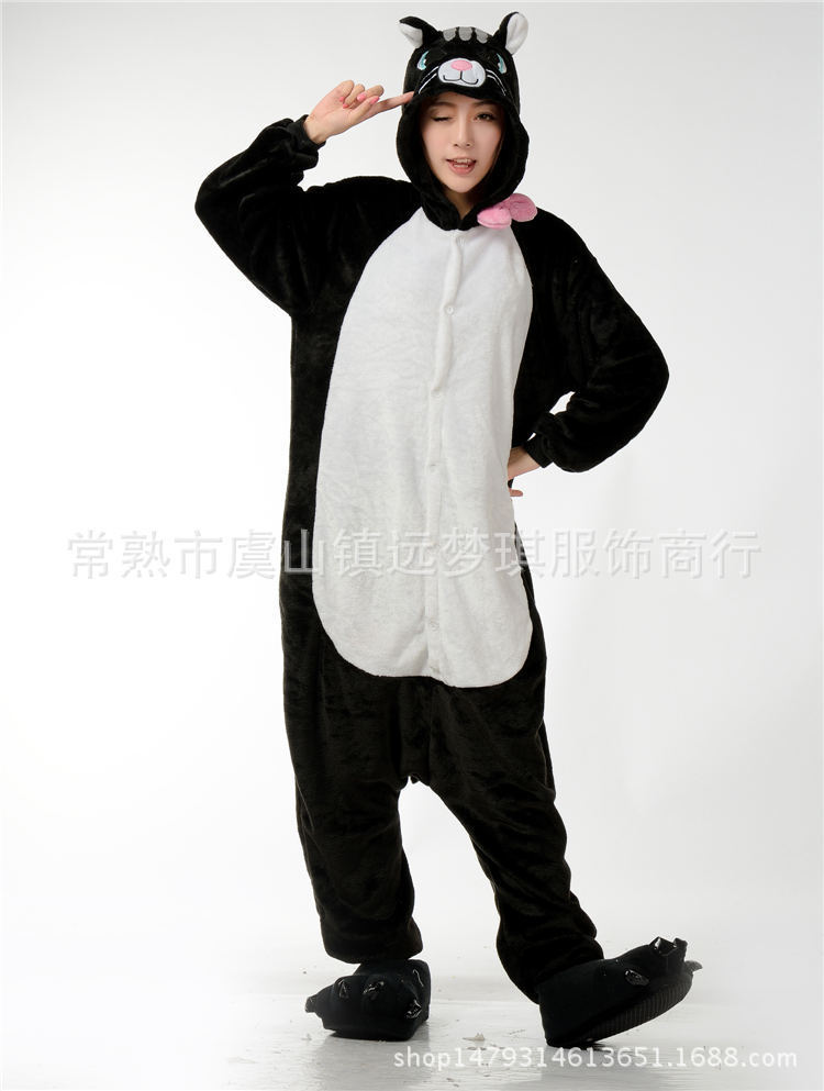 新款法兰绒动物连体睡衣卡通男女成人情侣家居服龙猫如厕版l