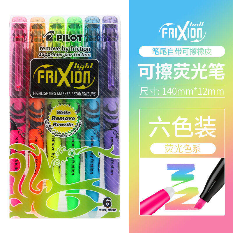 일본 PILOT bailimo 마찰 지울 수있는 형광등 마커 펜 비스듬한 머리 밝은 색 6 색 세트 SW-FL-S6