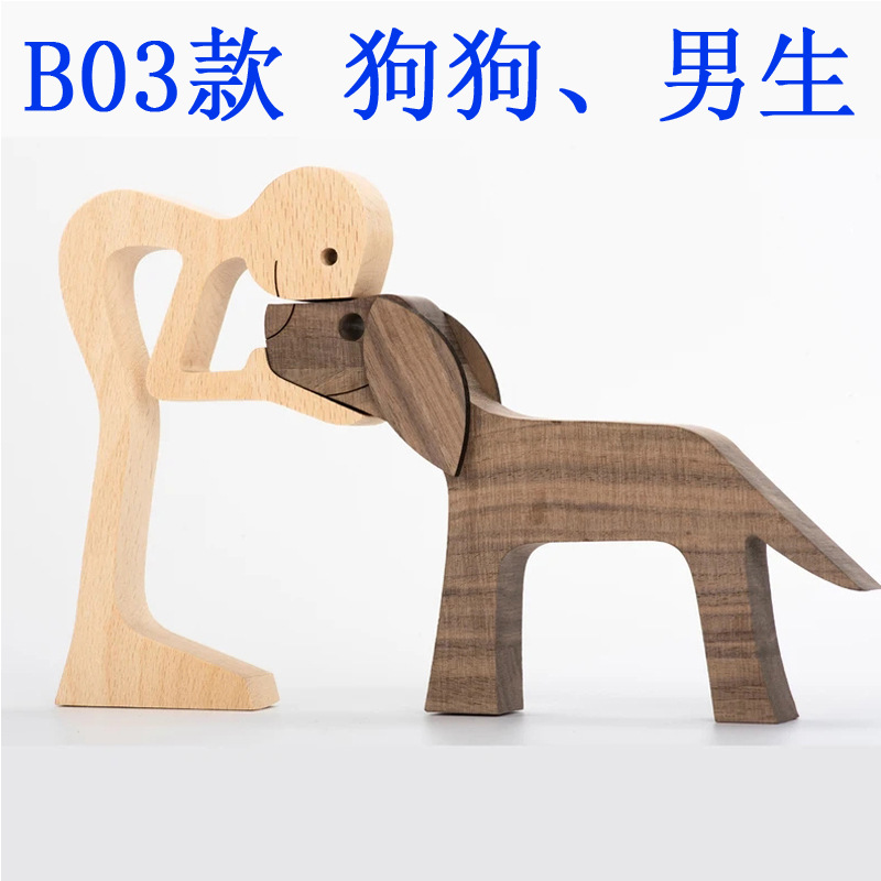 새로운 강아지 가족 장식품 나무 공예 장식품 나무 조각 장식품 공예 창조적 인 장식 데스크탑 북유럽스토어 가기